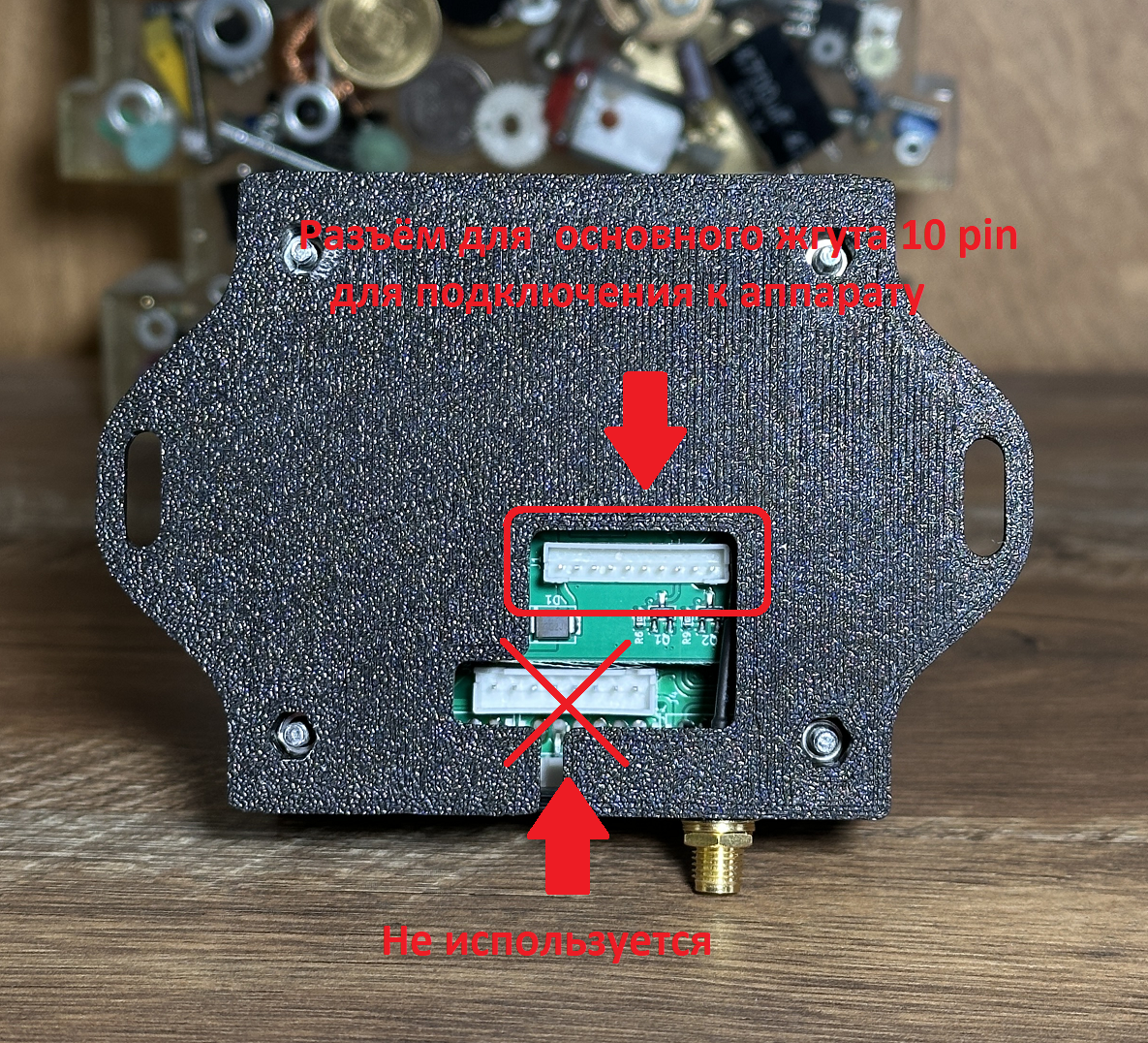 1. Соедините провода жгута (с разъёмом 10 pin) с проводами жгутов* ваших платёжных систем, а также с проводами питания и сигнала от вашего аппарата (жгут жетоноприёмника на призовом аппарате, клеммная колодка на материнской плате Rocky Boxer и пр.):