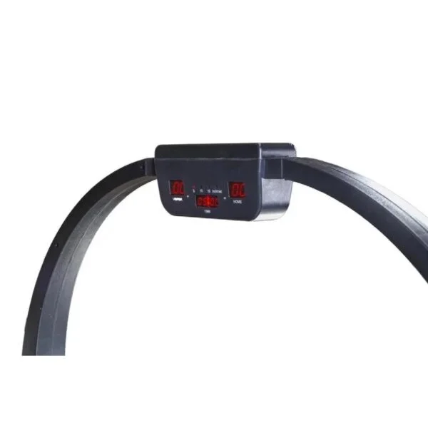 - Оборудован электронным счетчиком очков с программированием времени матча и звуковой фиксацией забитой шайбы. Для того, чтобы счет матча постоянно находился в поле зрения игроков, счетчик очков установлен на раму над игровым полем.