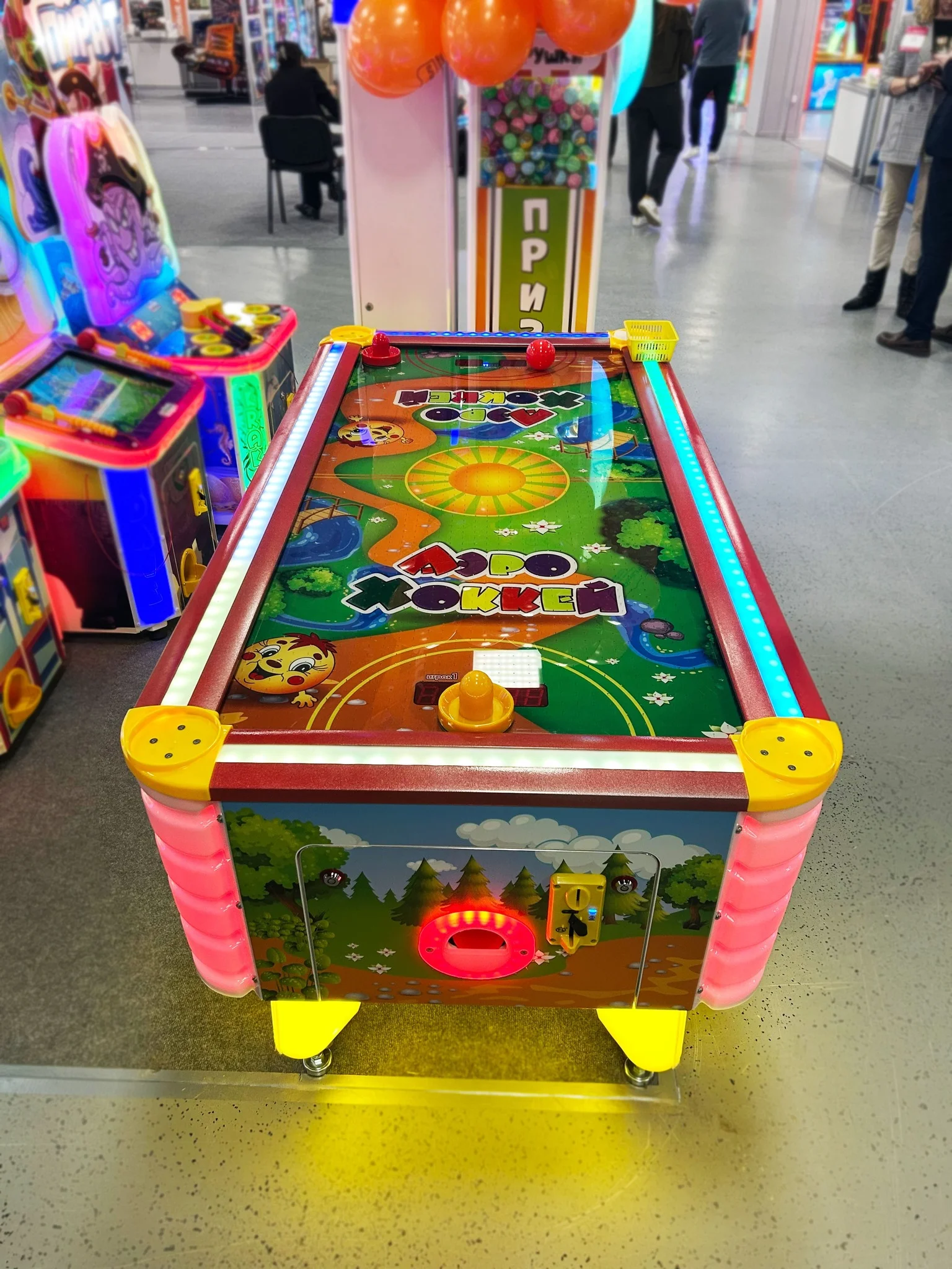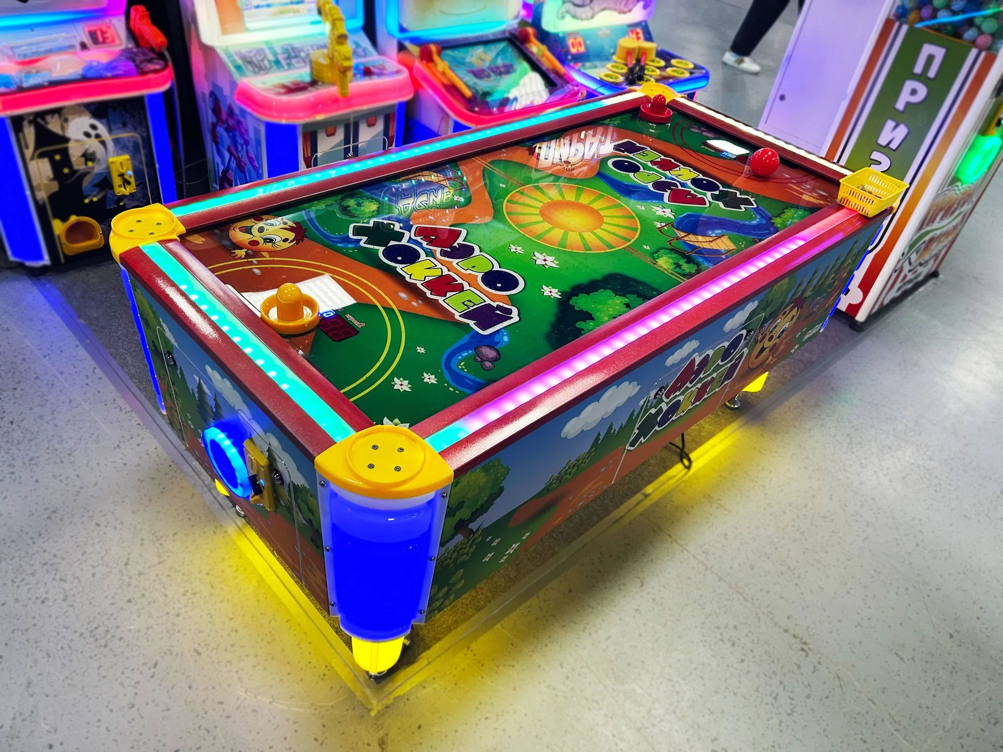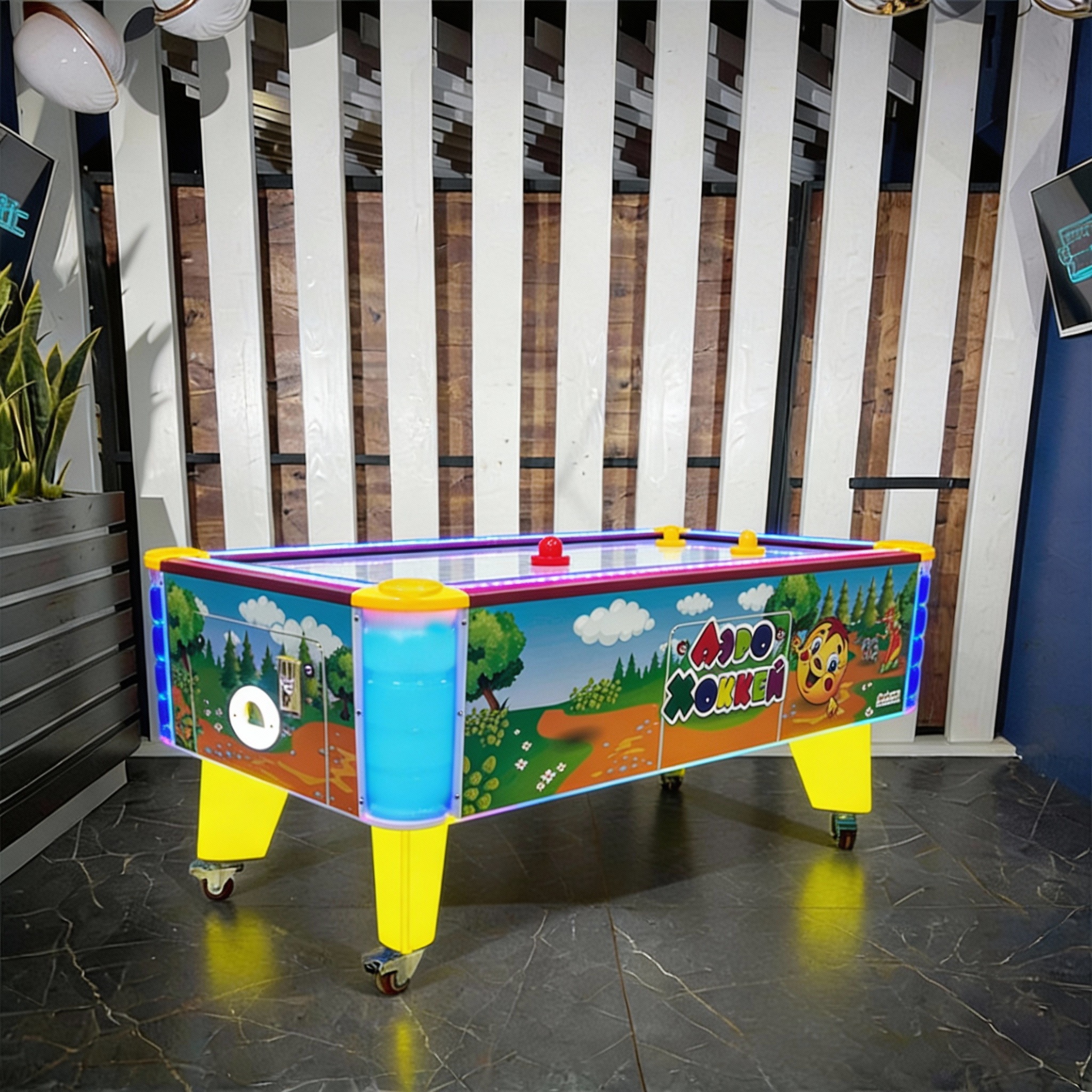 - Завораживающая подсветка: Светящиеся элементы по периметру! Яркие бортики, уголки, ножки и зона выдачи шайб создают атмосферу настоящего праздника и привлекают внимание даже издалека;