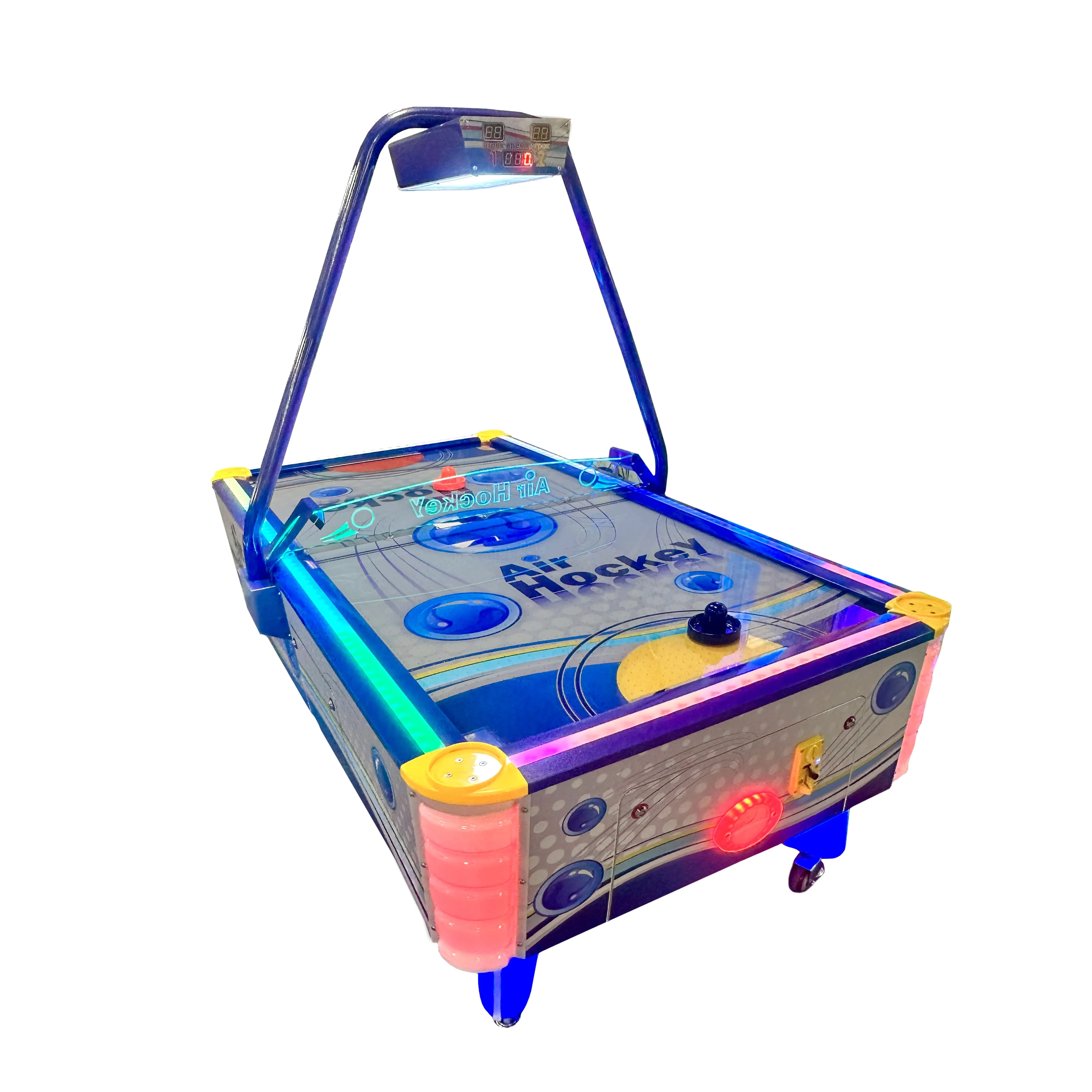 Представляем вашему вниманию Аэрохоккей для образовательных учреждений - аэрохоккей, который подарит незабываемые эмоции и азарт! Этот автомат сочетает в себе классический аэрохоккей с современными технологиями: яркая неоновая подсветка, динамичная игровая поверхность. Стильный дизайн с футуристическими элементами.