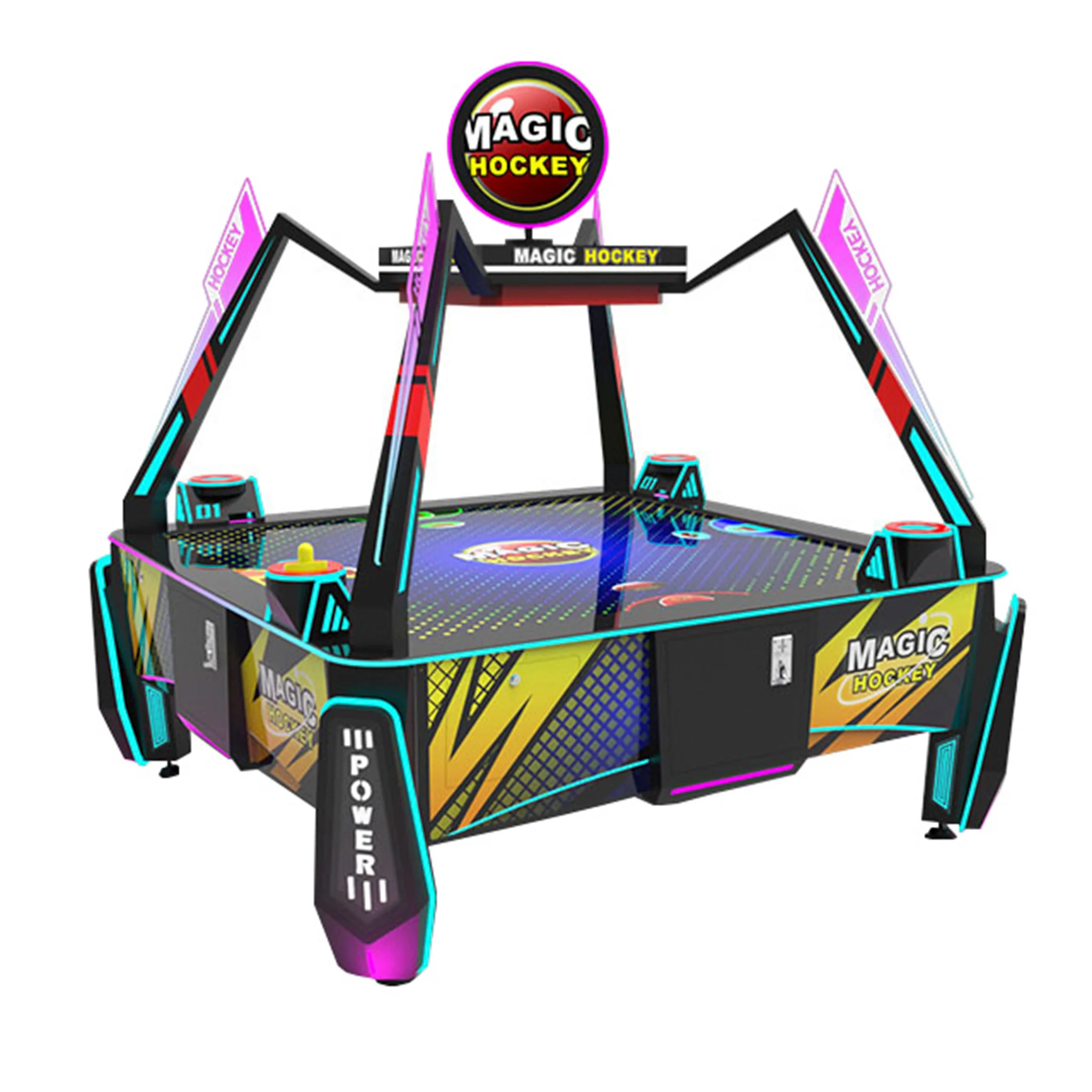 Magic Hockey — это современный аэрохоккей нового поколения, рассчитанный сразу на четырёх игроков. Яркая LED-подсветка, динамичный дизайн и удобная игровая механика делают его центром внимания в любом развлекательном центре.