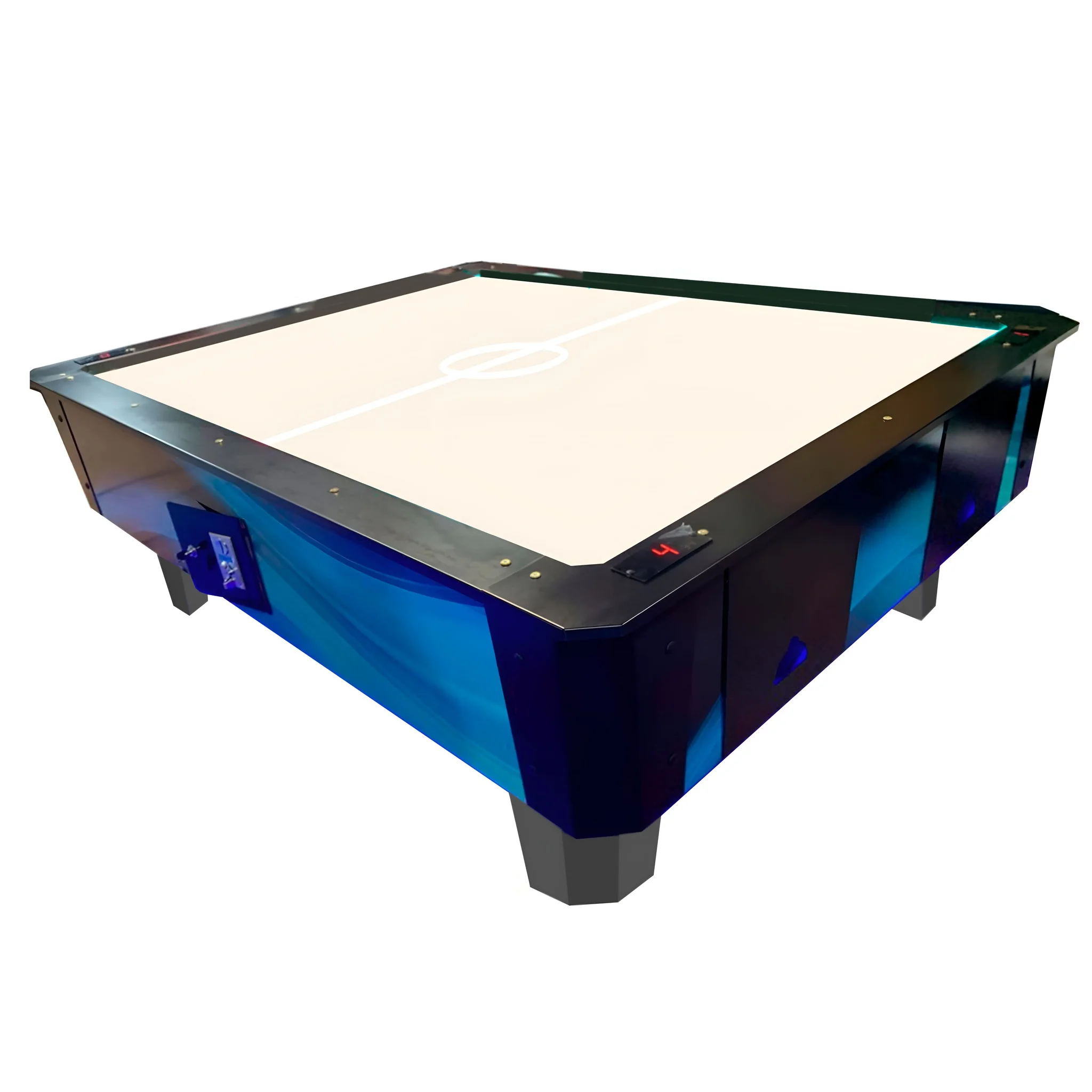 В этой модели четыре независимых табло счёта голов и табло счёта времени, которые встроены в верхний борт.
