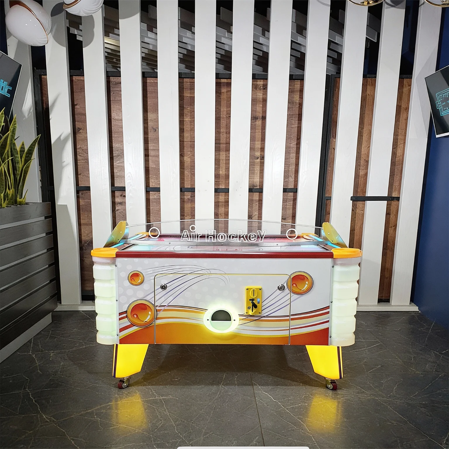 - Подсветка ног стола и и окошка выдачи шайбы;