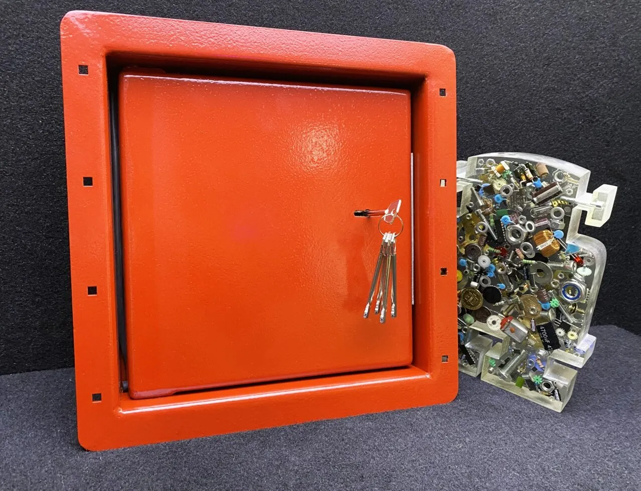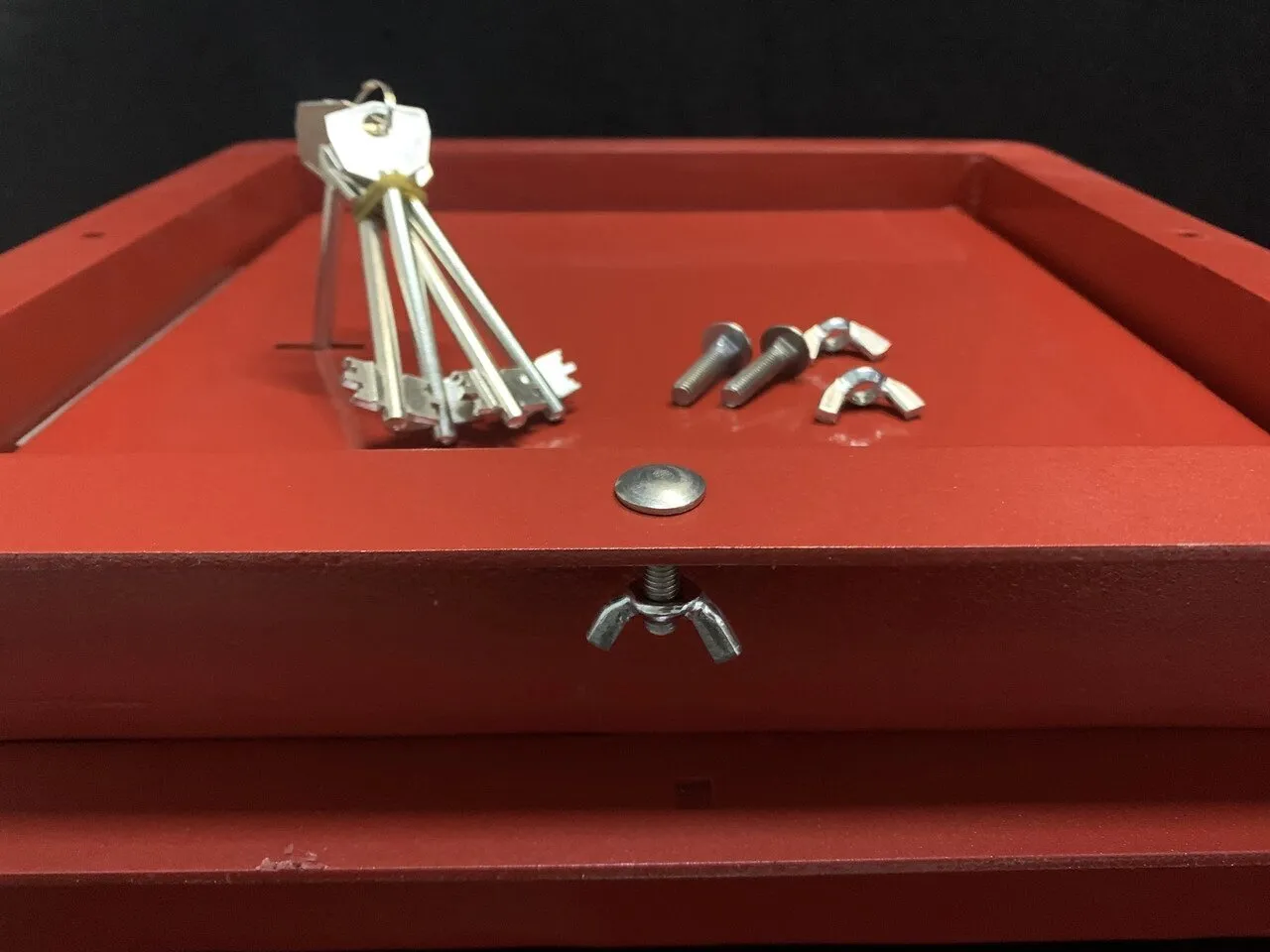 Болты для крепления не имеют прорезей для отвертки, что делает их взломостойкими, сталь подвергается термическому воронению для коррозийной стойкости и интересного внешнего вида.