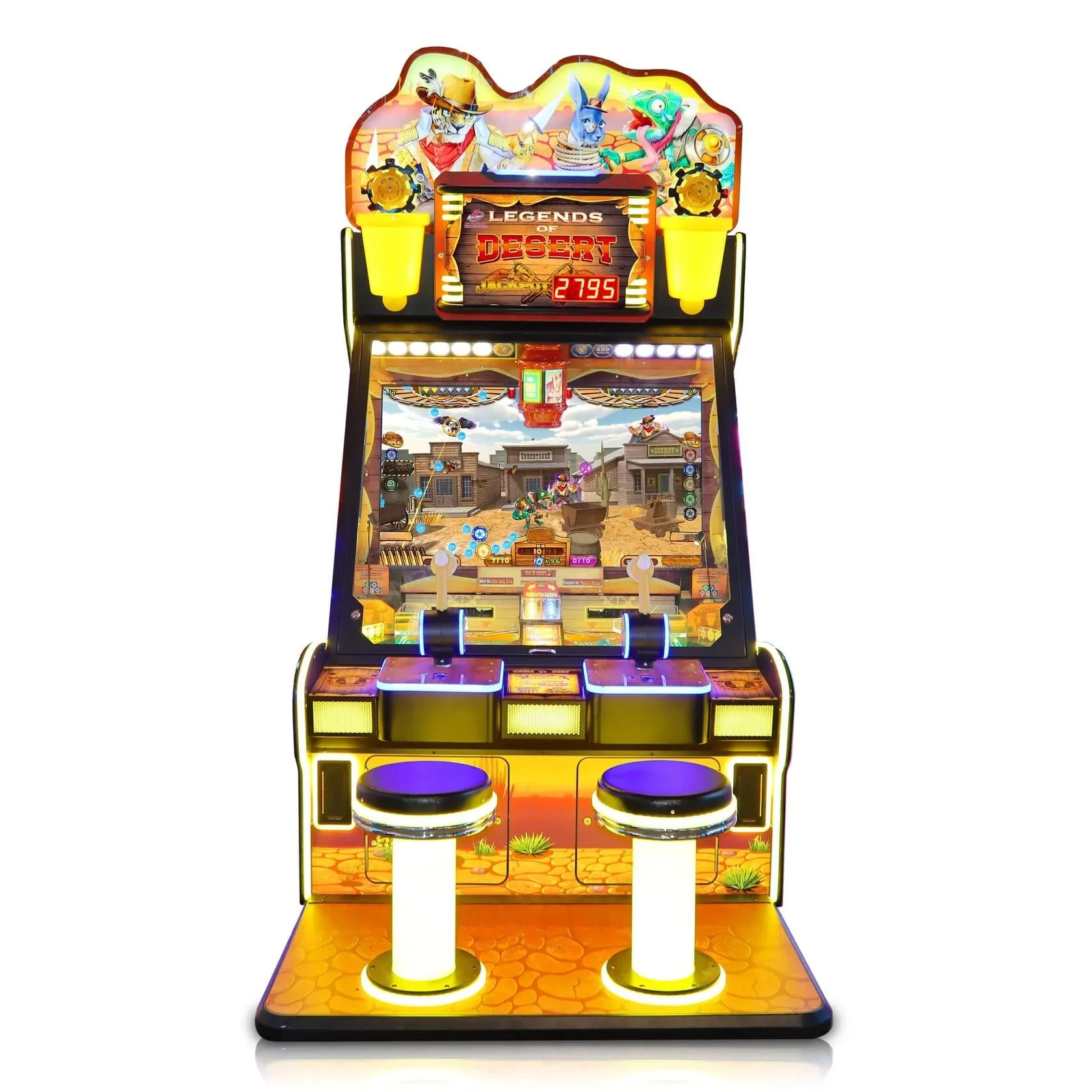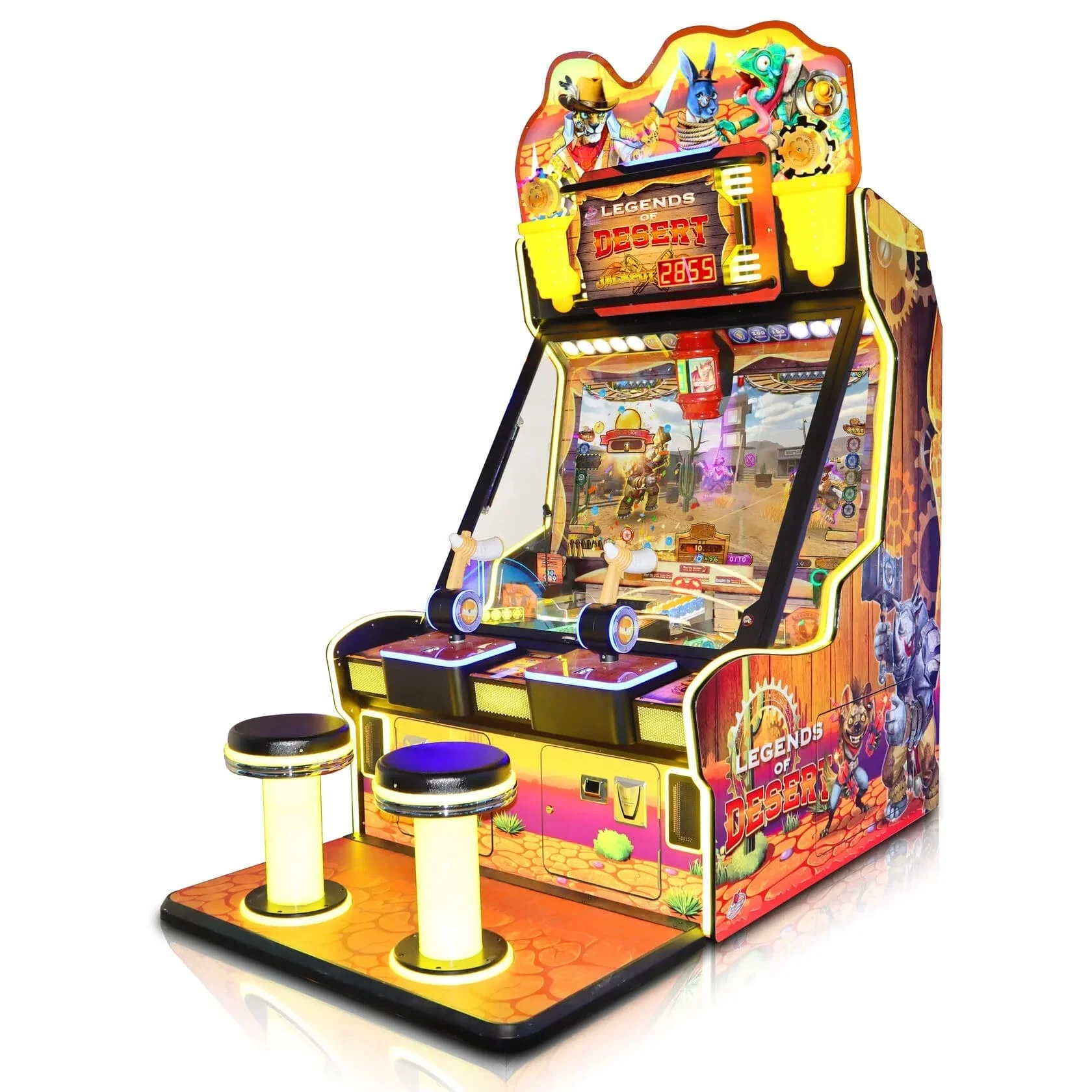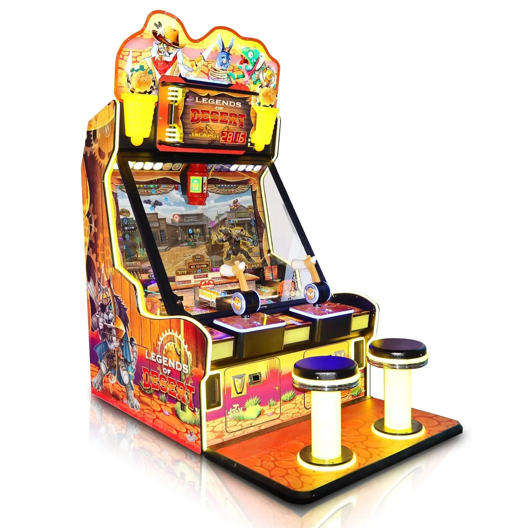 Legends of Desert – это современный игровой автомат для двух игроков, выполненный в тематике вестерна. Яркий дизайн и 49-дюймовый HD-экран создают атмосферу охоты за сокровищами, а динамичный геймплей делает игру увлекательной и азартной.