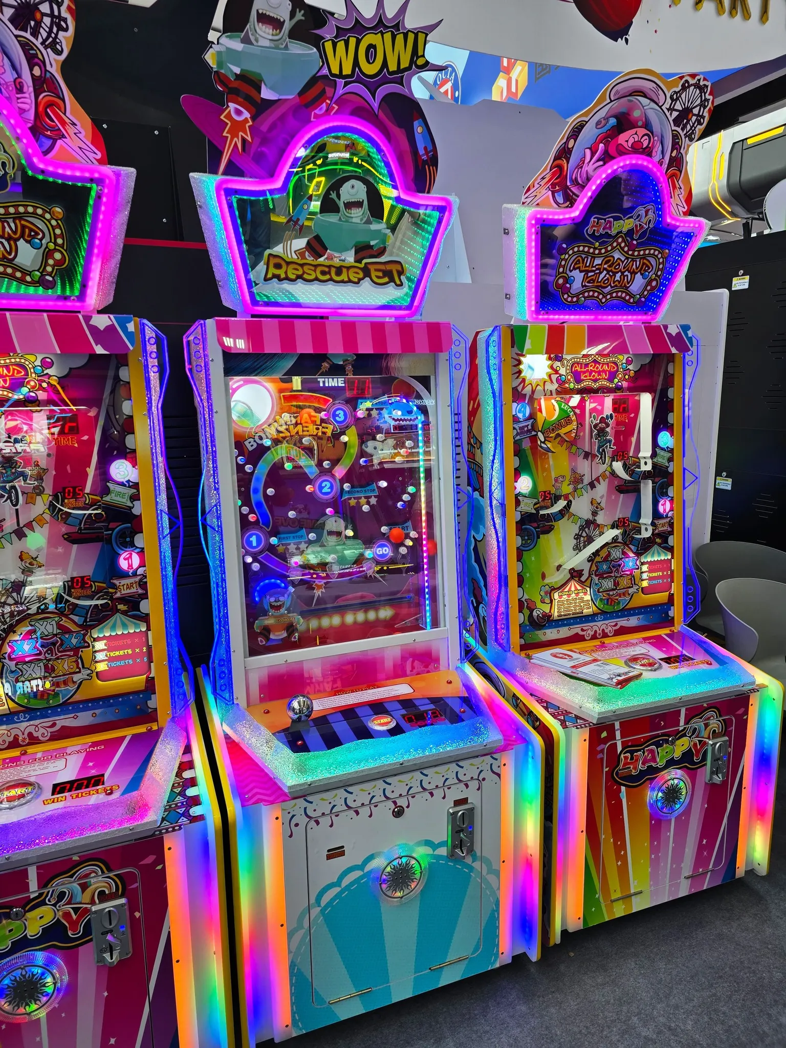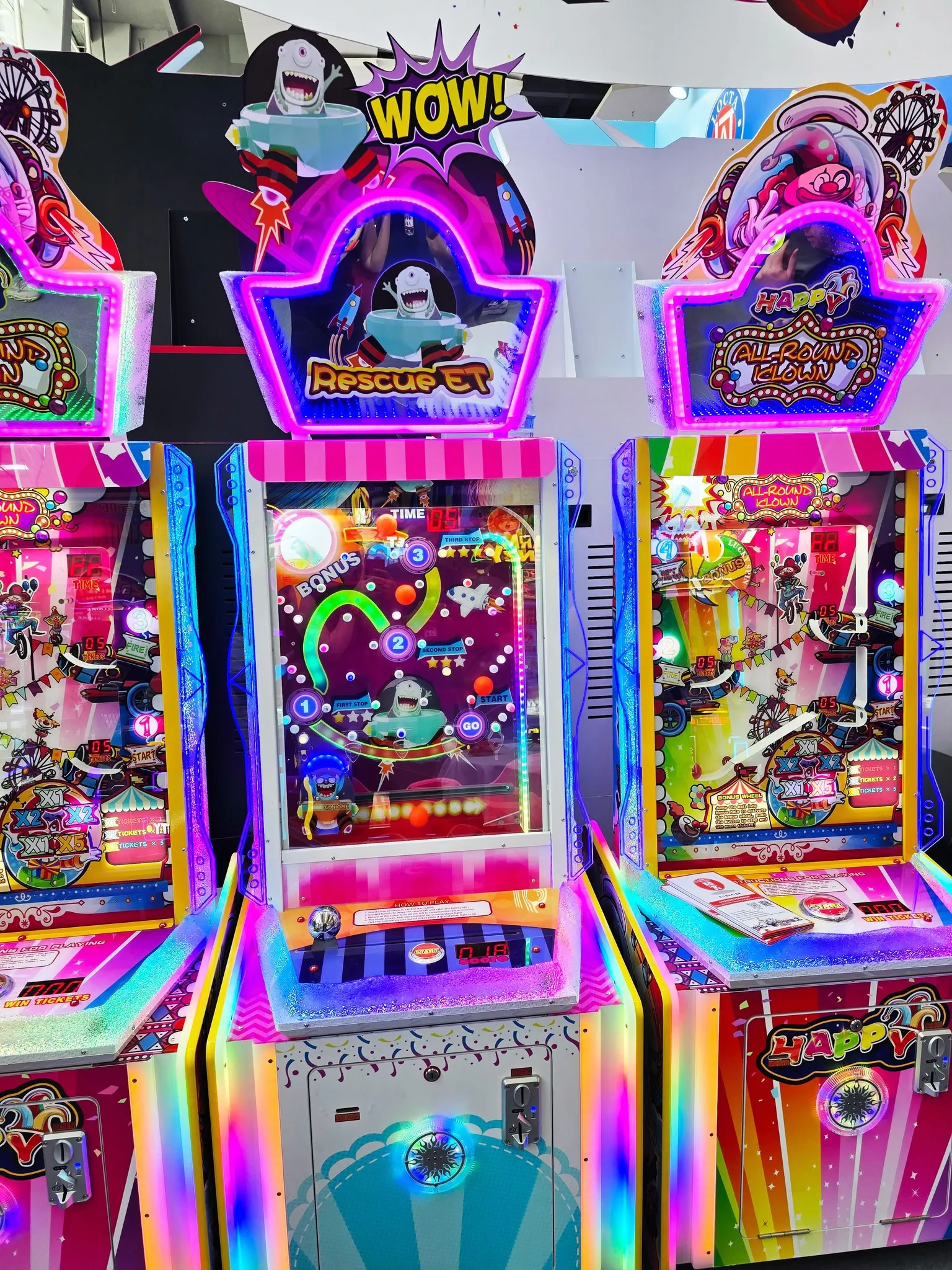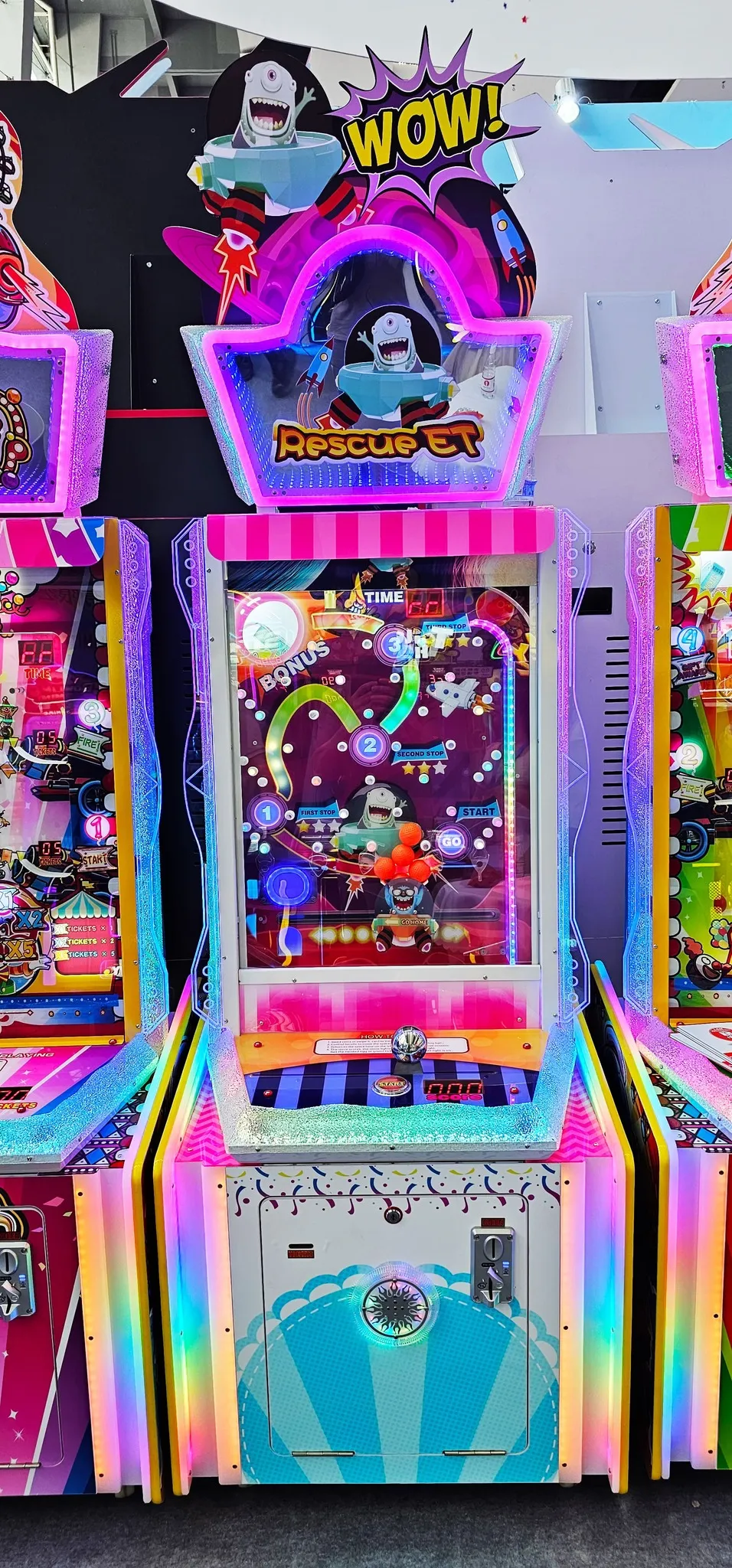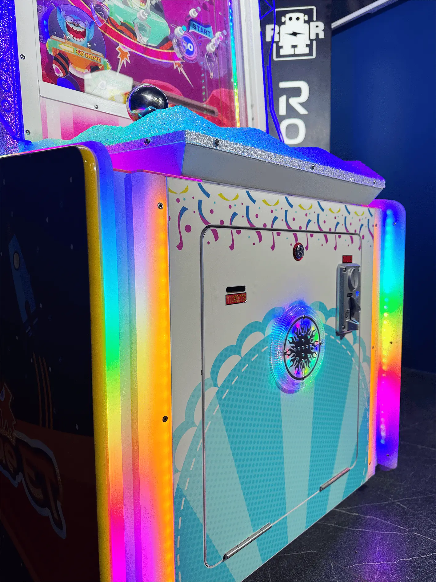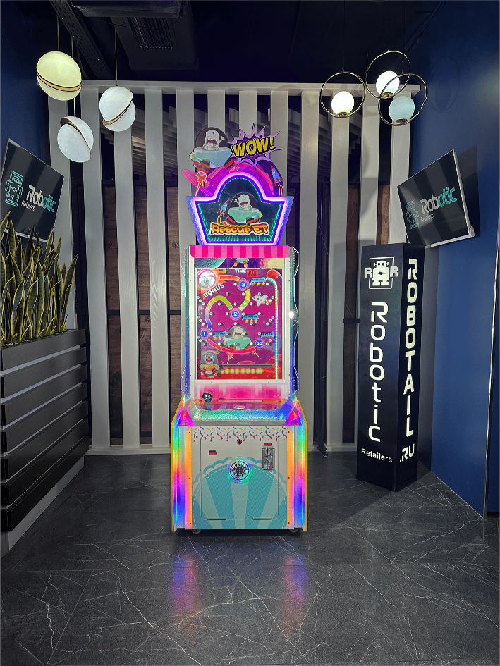 - Яркий дизайн: автомат украшен неоновой подсветкой и красочными графическими элементами, которые создают праздничную атмосферу;