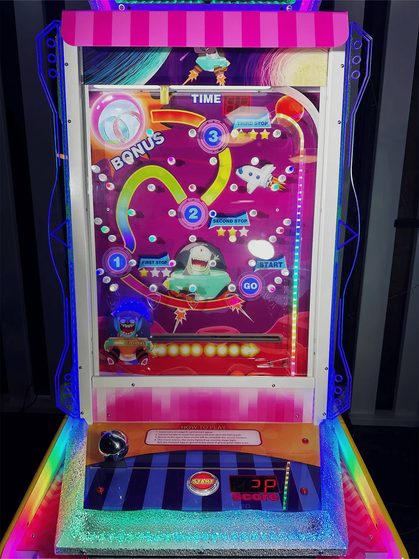 Космический карнавал - это увлекательный интерактивный игровой автомат, который привлекает внимание ярким дизайном и захватывающей игрой. Идеально подходит для семейных парков развлечений, торговых центров и детских площадок.