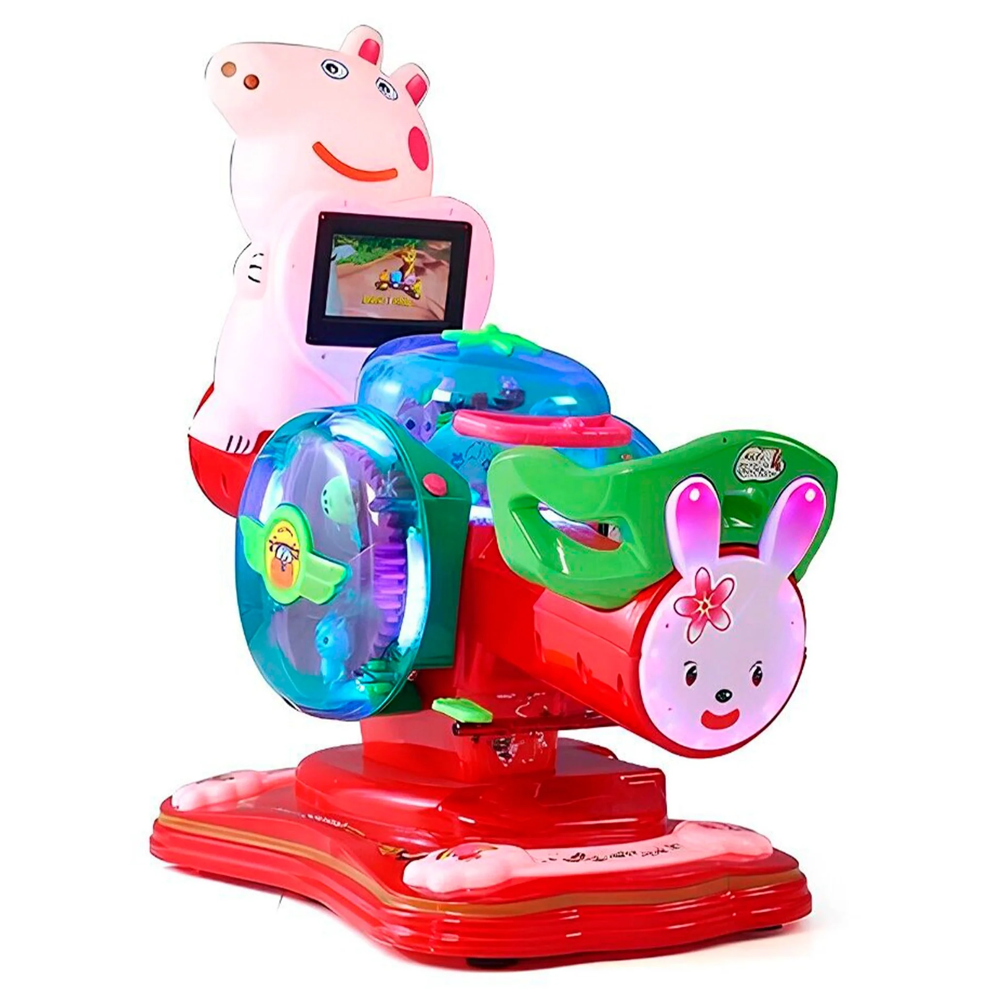 - Экран с мультиками: "Качели со зверятами" оснащен встроенным экраном с интересными мультиками. Это дополнительное развлечение, которое увлекает детей и добавляет веселья к обыденному качанию.Волшебный дизайн: "Сказочные качельки" оформлены в привлекательном и молом дизайне, детишкам точно понравится;