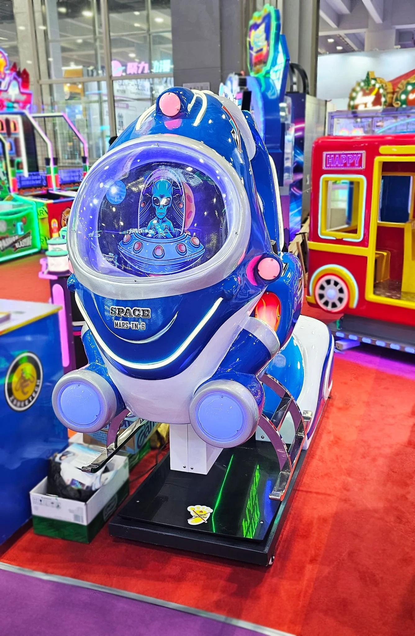 - Прочная конструкция: грузоподъемность до 50 кг, что позволяет использовать аттракцион детям разного возраста и весовых категорий;