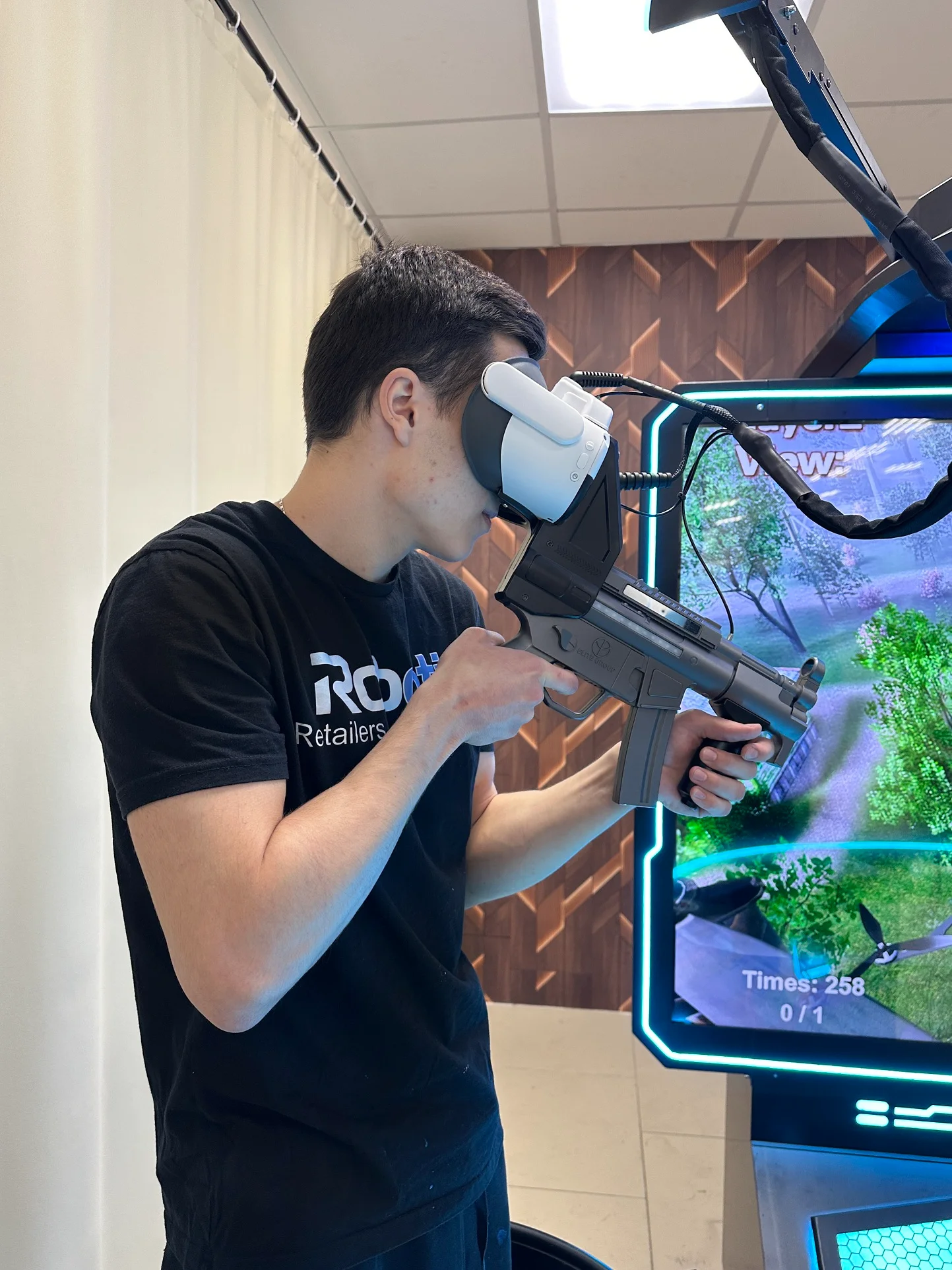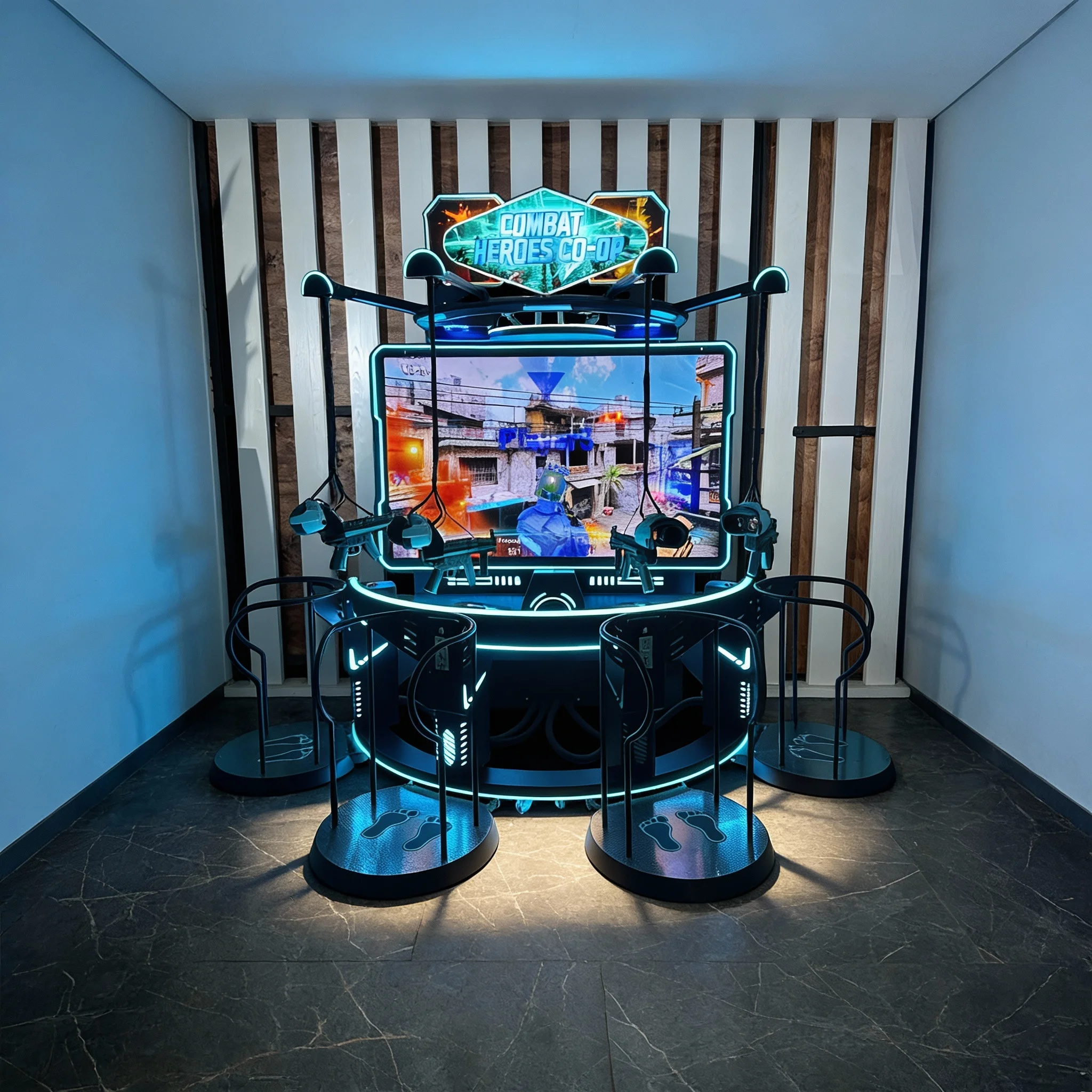 Аттракцион виртуальной реальности «VR Combat» — это инновационное развлечение, которое погружает игроков в захватывающий мир высокотехнологичных боевых сценариев. Сочетая передовые технологии VR и интерактивные элементы, этот аттракцион идеально подходит для торговых центров, семейных развлекательных комплексов и других мест, где ценится динамичный и погружённый игровой опыт.