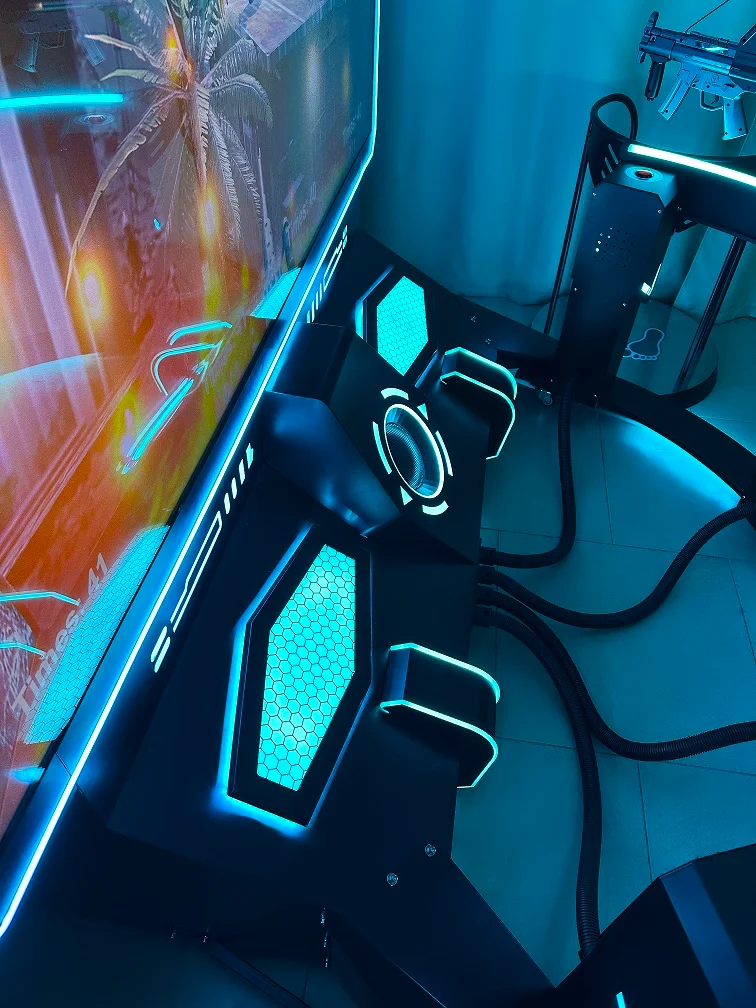 - Интерактивные оружия: Каждый игрок управляет собственным оружием, которое отображается в игре с точной физикой. Оружие оснащено световыми эффектами и звуковыми сигналами, усиливающими ощущение реальности;