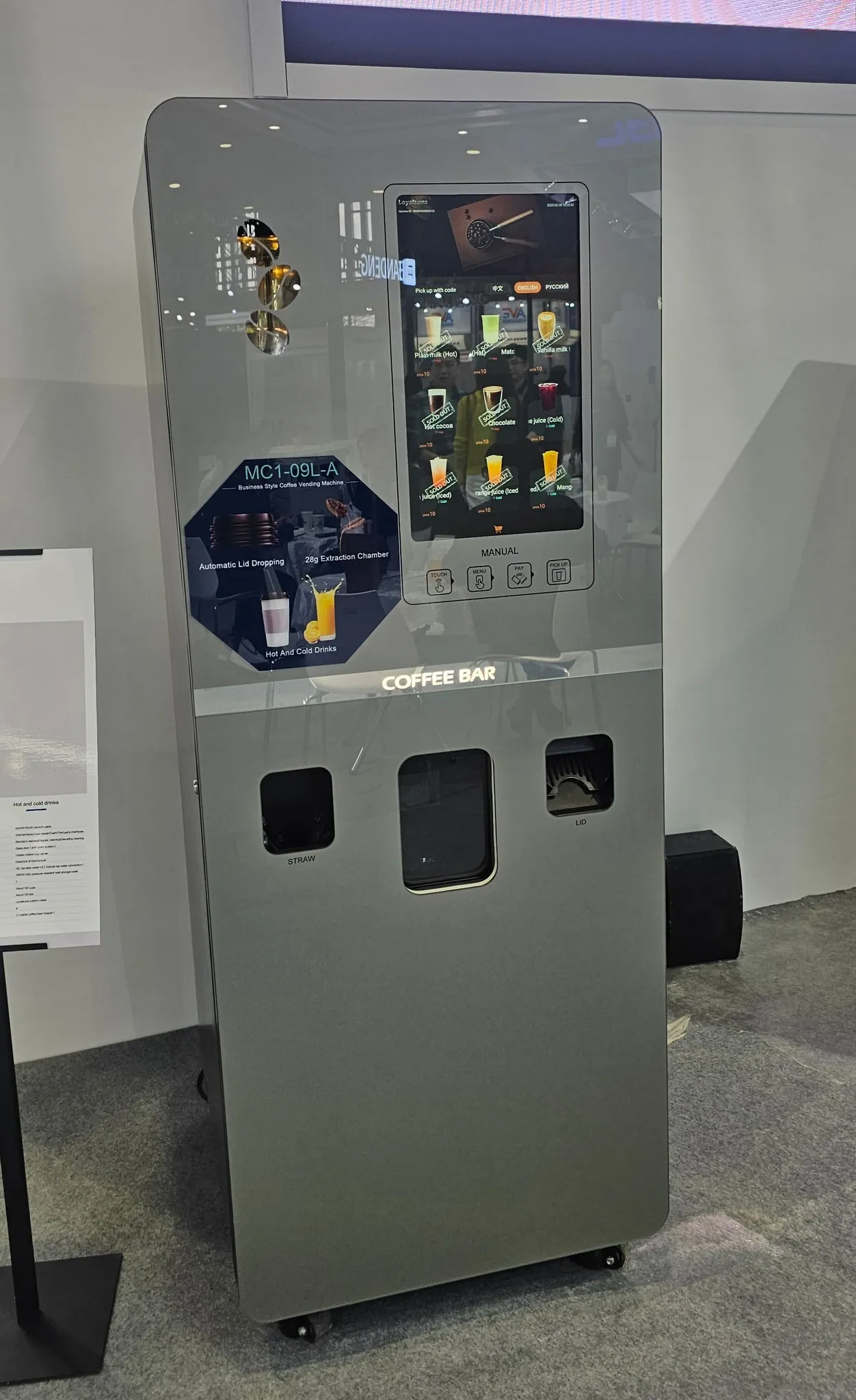 Представляем вашему вниманию вендинговый автомат для изготовления и продажи кофейных напитков «Coffee Bar» - современное устройство, которое готовит ароматный кофе и другие напитки за считанные минуты! Этот автомат идеально подходит для тех, кто хочет предложить посетителям качественные кофейные напитки без необходимости нанимать бариста. Простой процесс: выберите напиток, оплатите заказ, и автомат приготовит ваш кофе. Стильный дизайн, сенсорный экран и автоматическая система очистки делают его идеальным для мест с высокой проходимостью. Установите автомат и порадуйте своих клиентов свежим кофе в любое время!