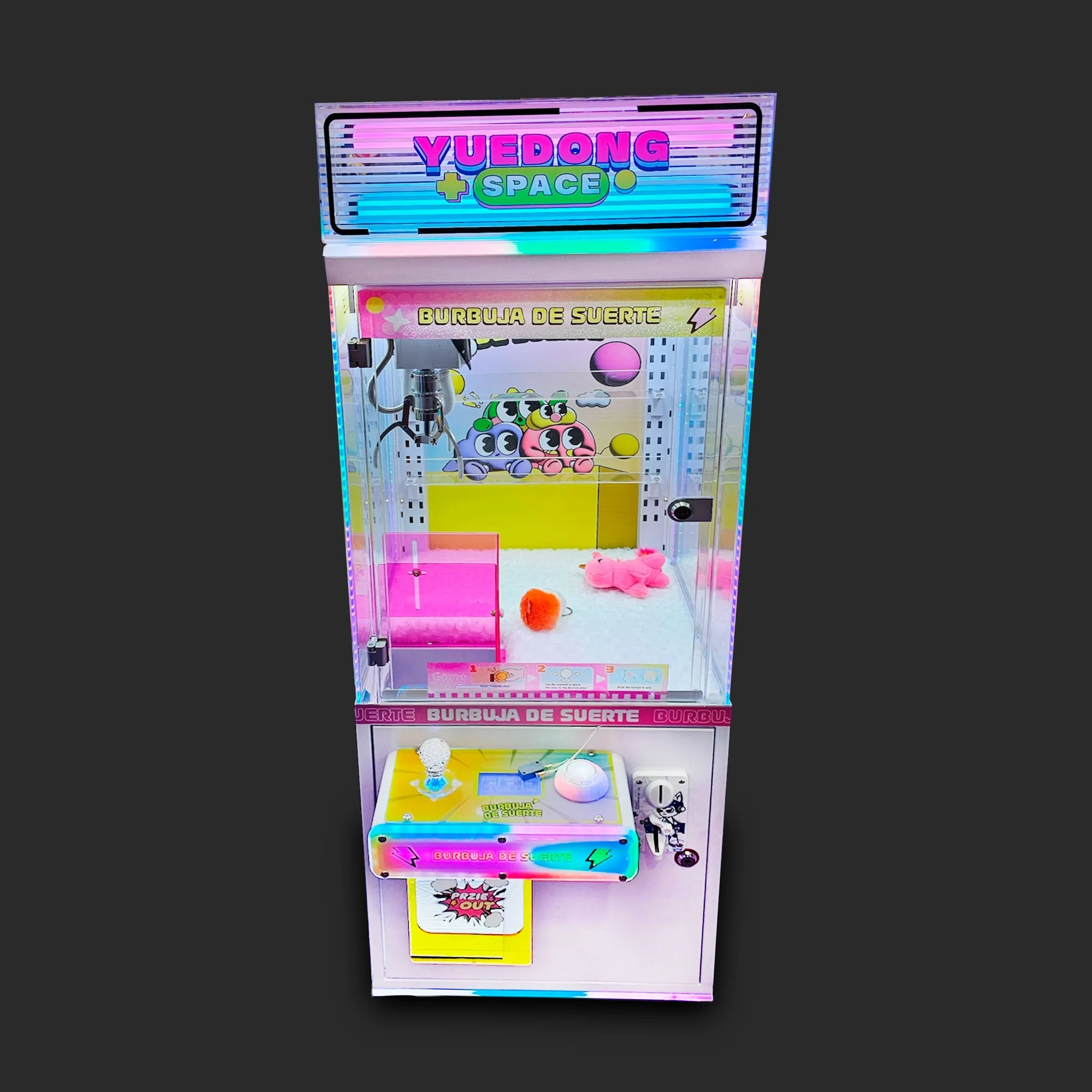 - Автомат выполнен в ярких цветах с неоновой подсветкой, что привлекает внимание как детей, так и взрослых;