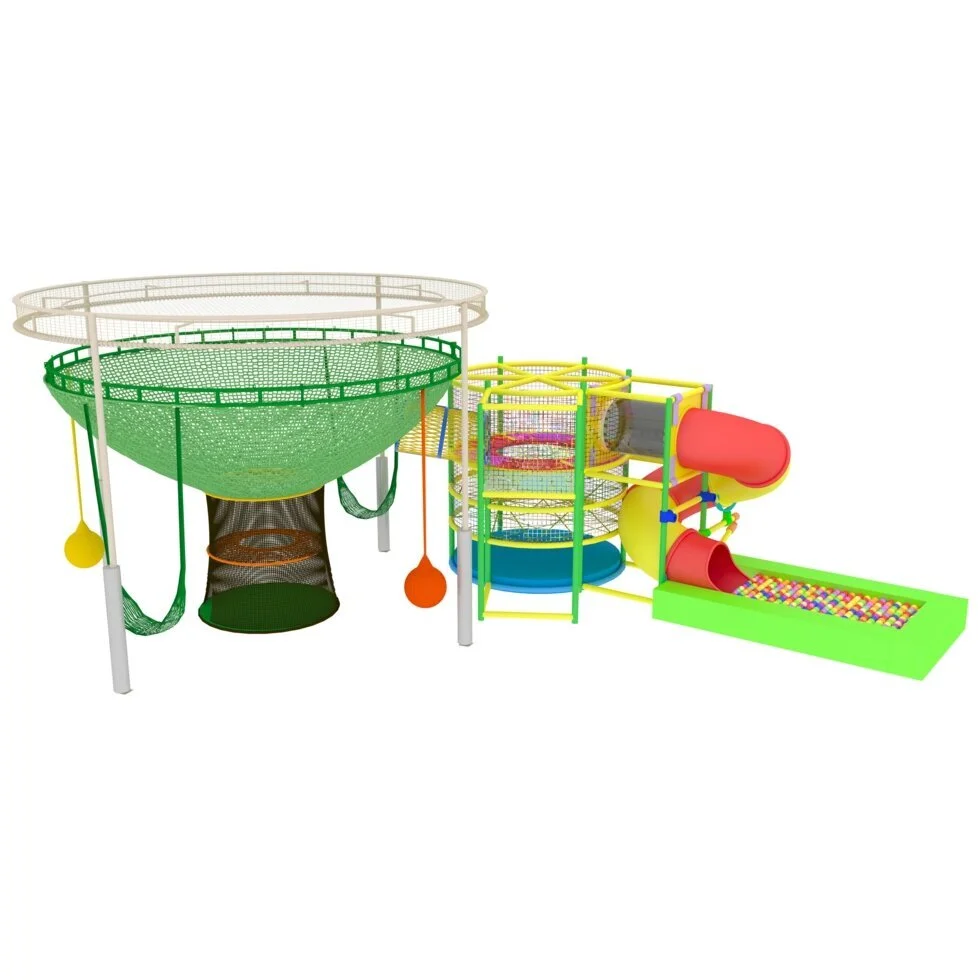 Красочные сети сплетены из прочной нейлоновой нити 5мм, материал безопасен и приятен на ощупь. Отличается повышенной износостойкостью и не имеет запаха, имеют низкую растяжимость, а винтовая горка приведет в восторг ваших маленьких посетителей.