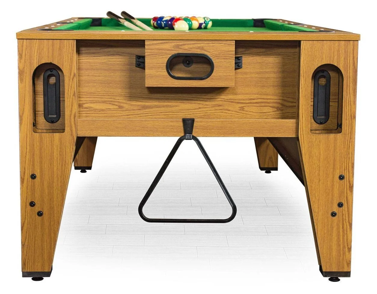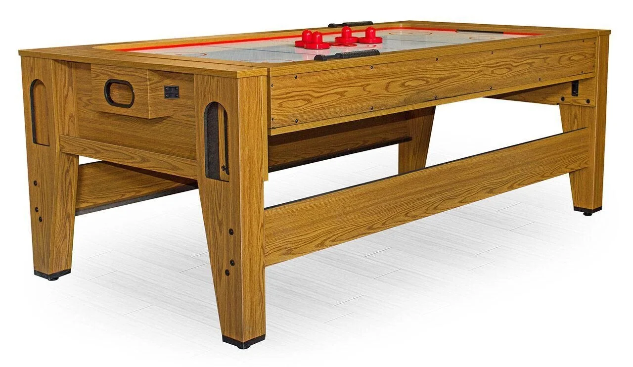 В зависимости от настроения Вы сможете провести на нем тренировку по пулу или сразиться в аэрохоккей с лучшим другом - достаточно просто повернуть игровую поверхность. Причем сделать это очень легко - просто поверните стол и закрепите нужную вам поверхность. Не обошла данная модель и любителей настольного тенниса. Вы легко сможете сыграть пару сетов в пинг-понг, установив игровую столешницу для тенниса.