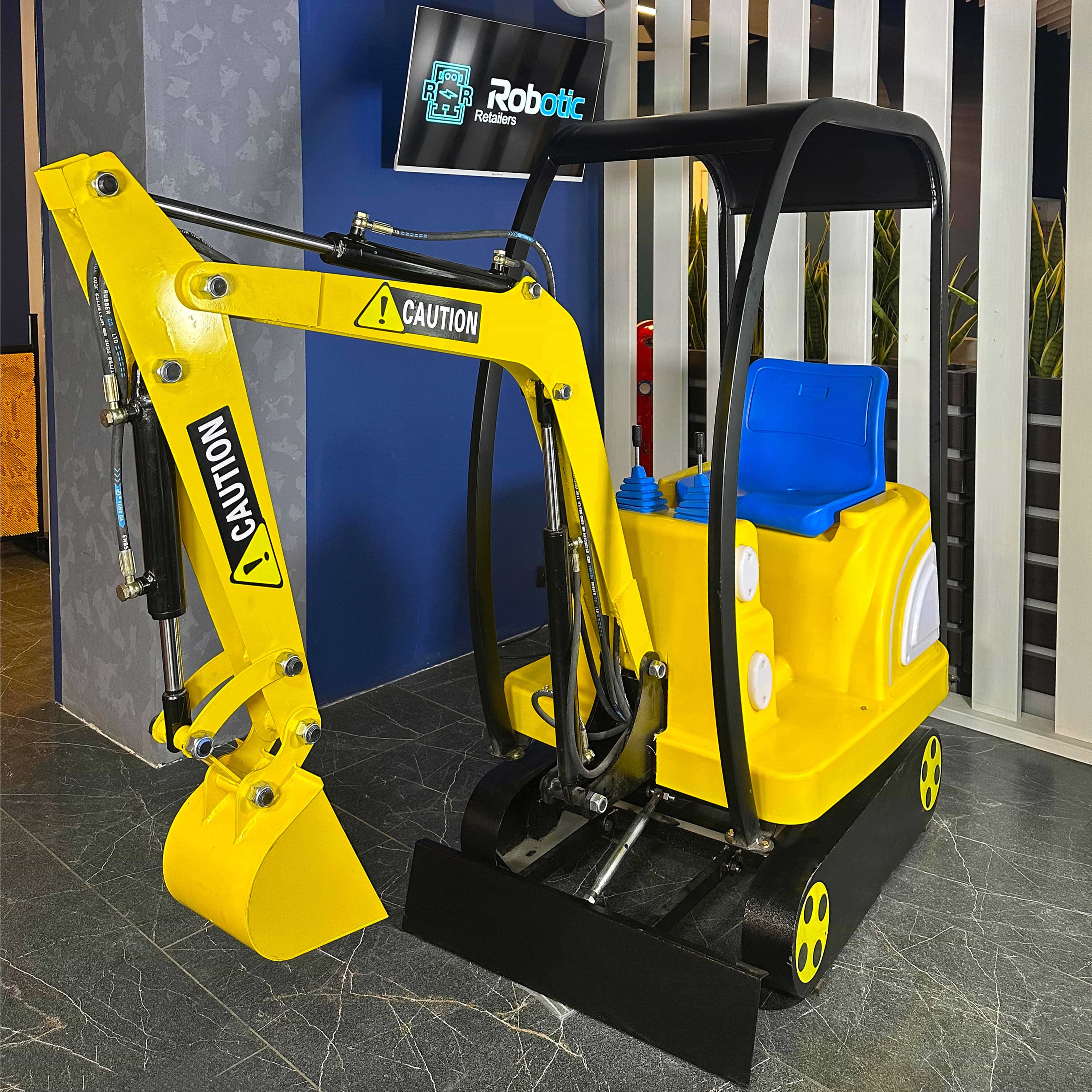 - Аттракцион оснащен рабочим ковшом, который может подниматься и опускаться, имитируя работу настоящего экскаватора;