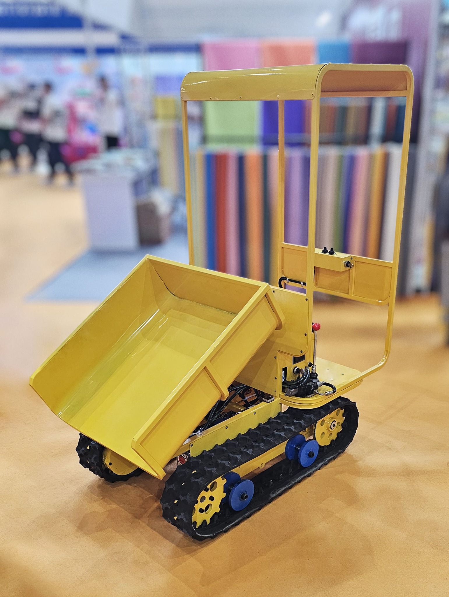 Это уникальный детский электрический самосвал на гусеничном ходу, созданный по образу настоящей строительной техники. Машина полностью безопасна, устойчива и рассчитана на активные детские игры в тематических парках, на улицах и площадках.