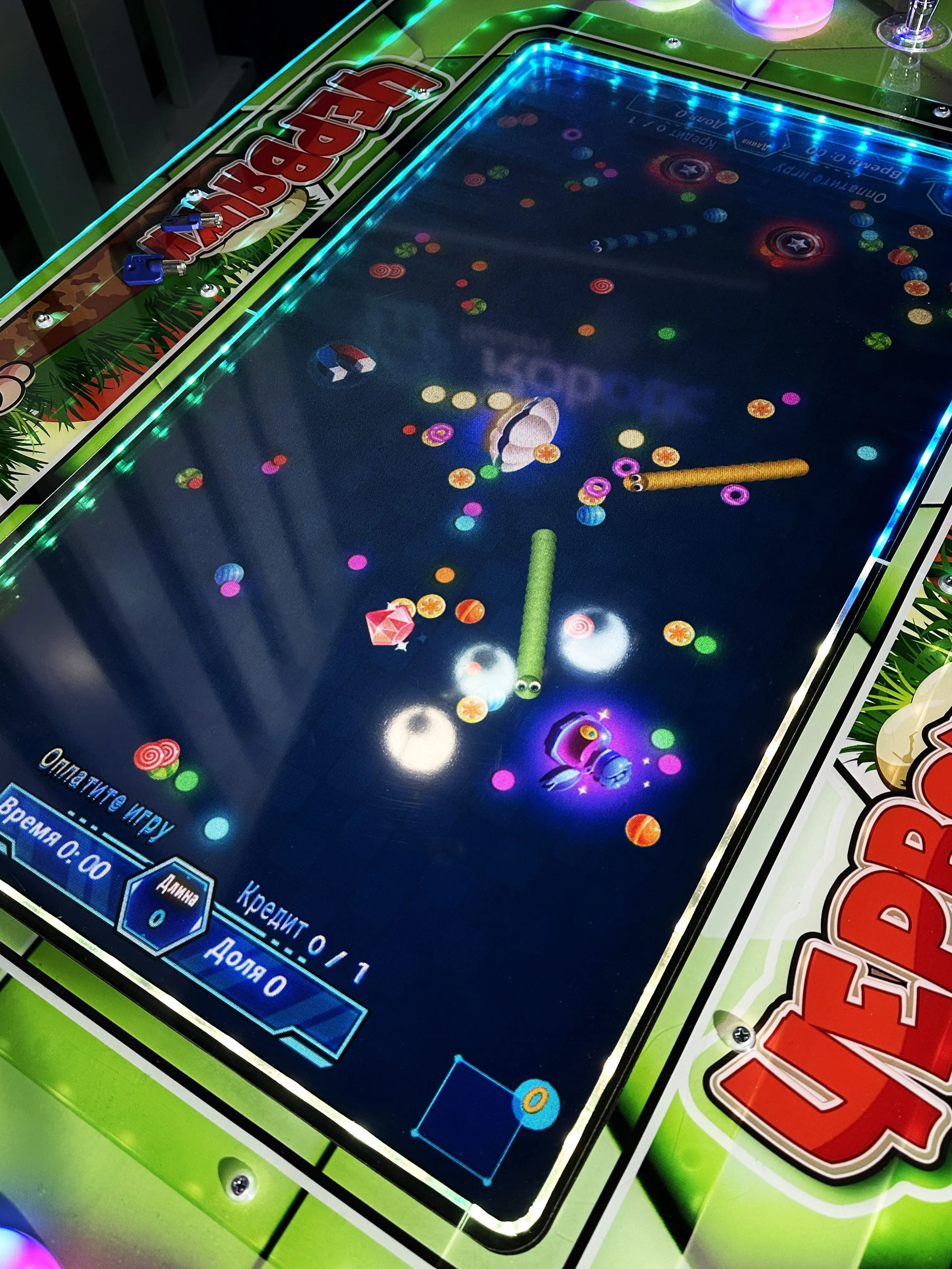 «Червячки» — это соревновательный игровой автомат с большим 32-дюймовым экраном и ярким дизайном, который привлекает внимание детей и взрослых. Игра создана для активного и веселого времяпрепровождения: можно играть как одному, так и вдвоем, что делает автомат отличным инструментом для развития коммуникации и командного взаимодействия.