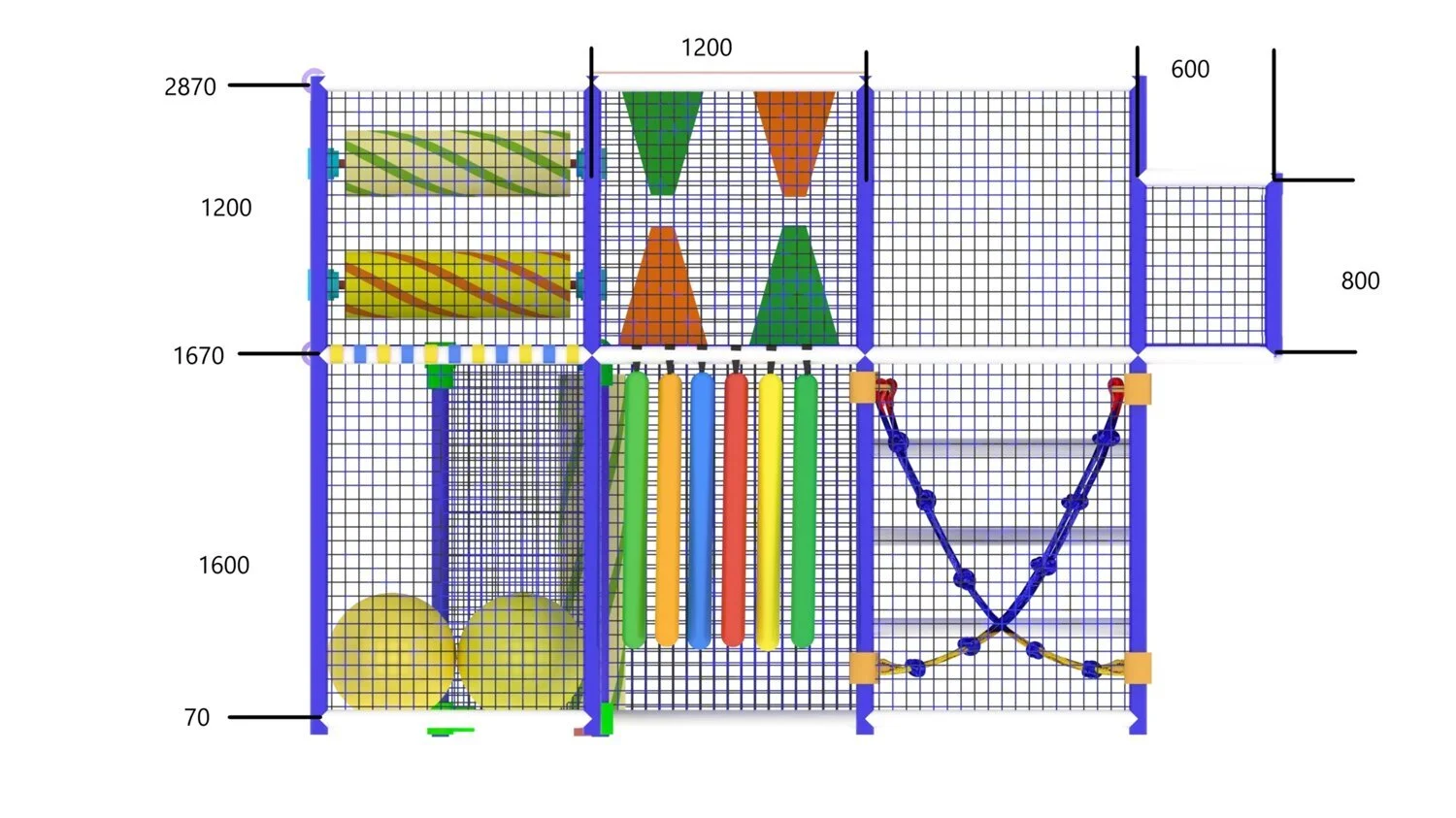 - Для покрытия металлического каркаса лабиринты укомплектованы виниловым рукавом и стяжками для их крепления с плоским замком. Защитный виниловый рукав покрывает всю металлическую конструкцию лабиринта, защищая детей от ударов и ранений.