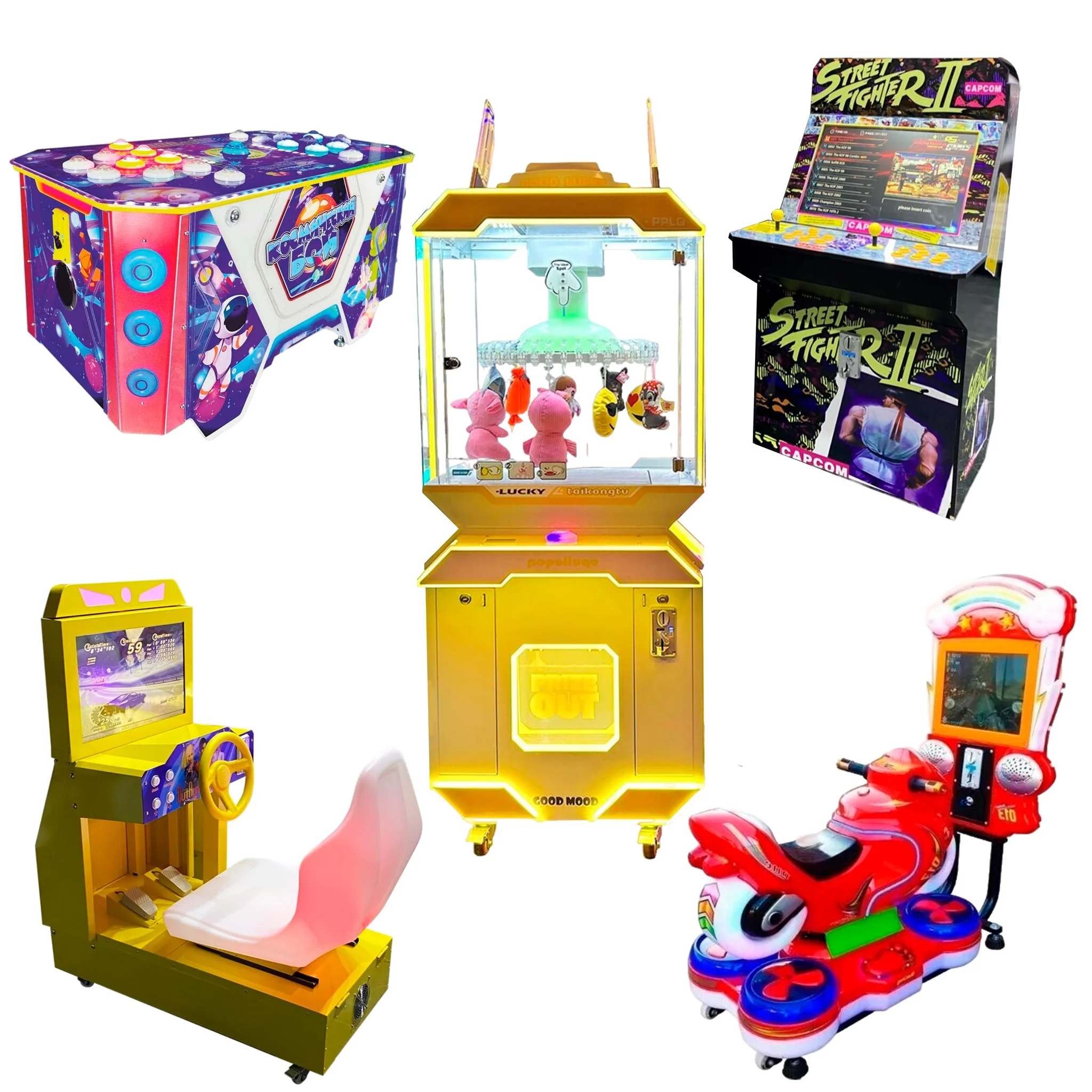 Автоматы подходят для детей от 1 года, а благодаря аэрохоккею и симуляторам будут интересны и взрослым.