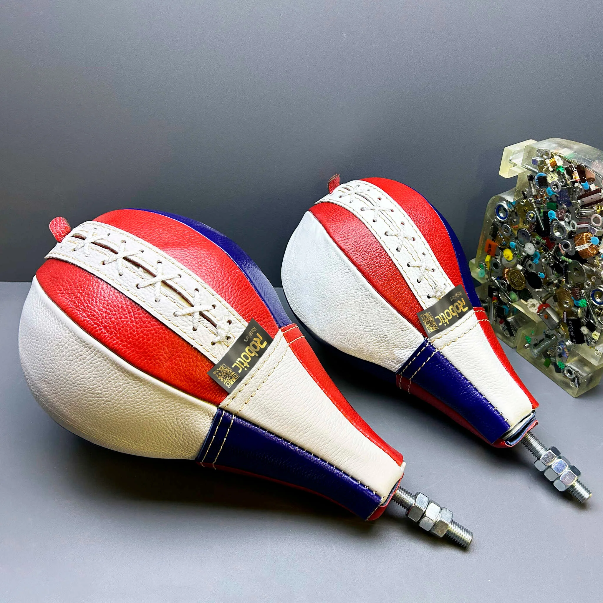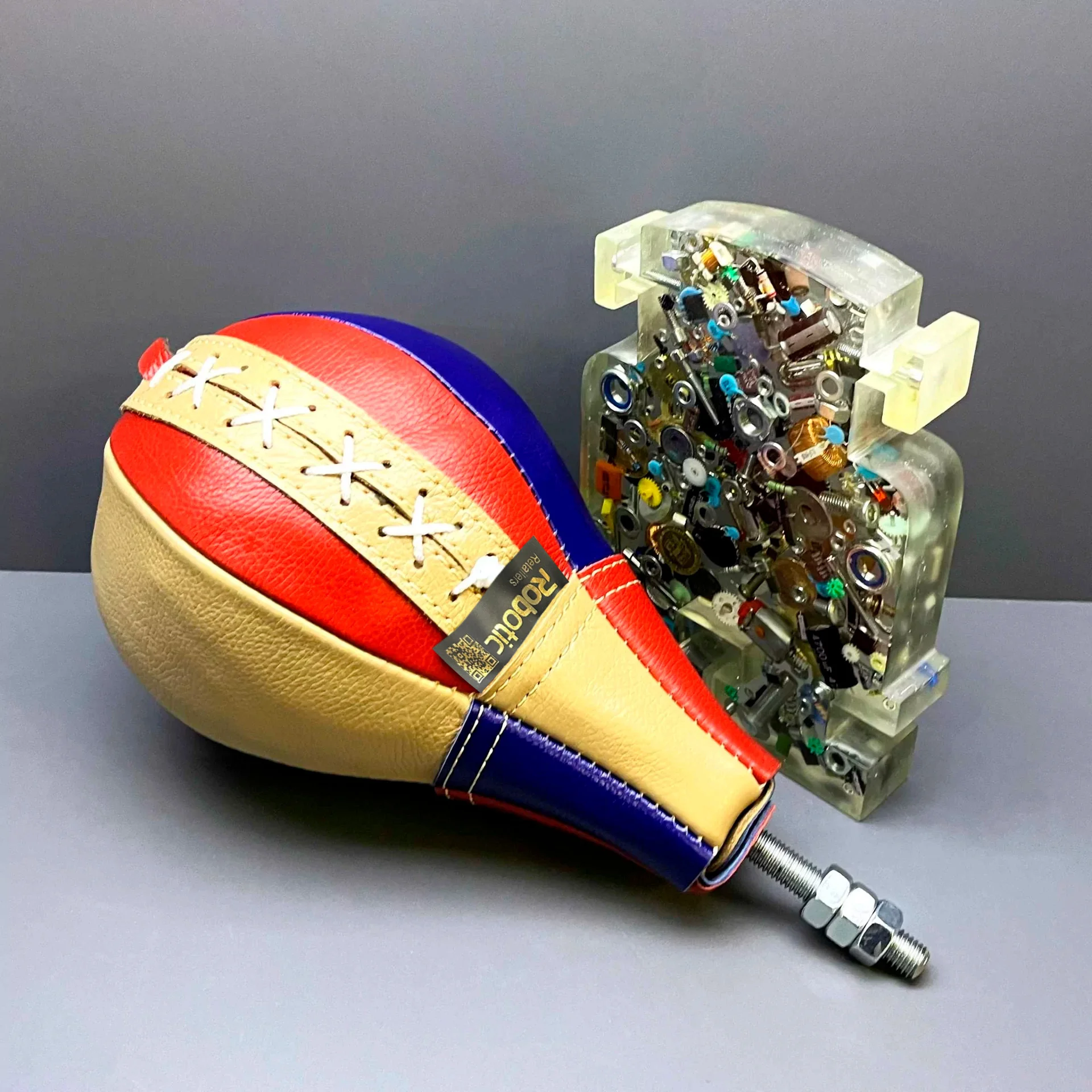Качественная груша для силомера боксера, состоящая из чехла изготовленного из кожи КРС толщиной 1.6-1.8 мм, конуса из сверхпрочного полиуретана со шпилькой повышенной прочности, латексной камеры с грибком и усиленного чехла для защиты камеры в груше.