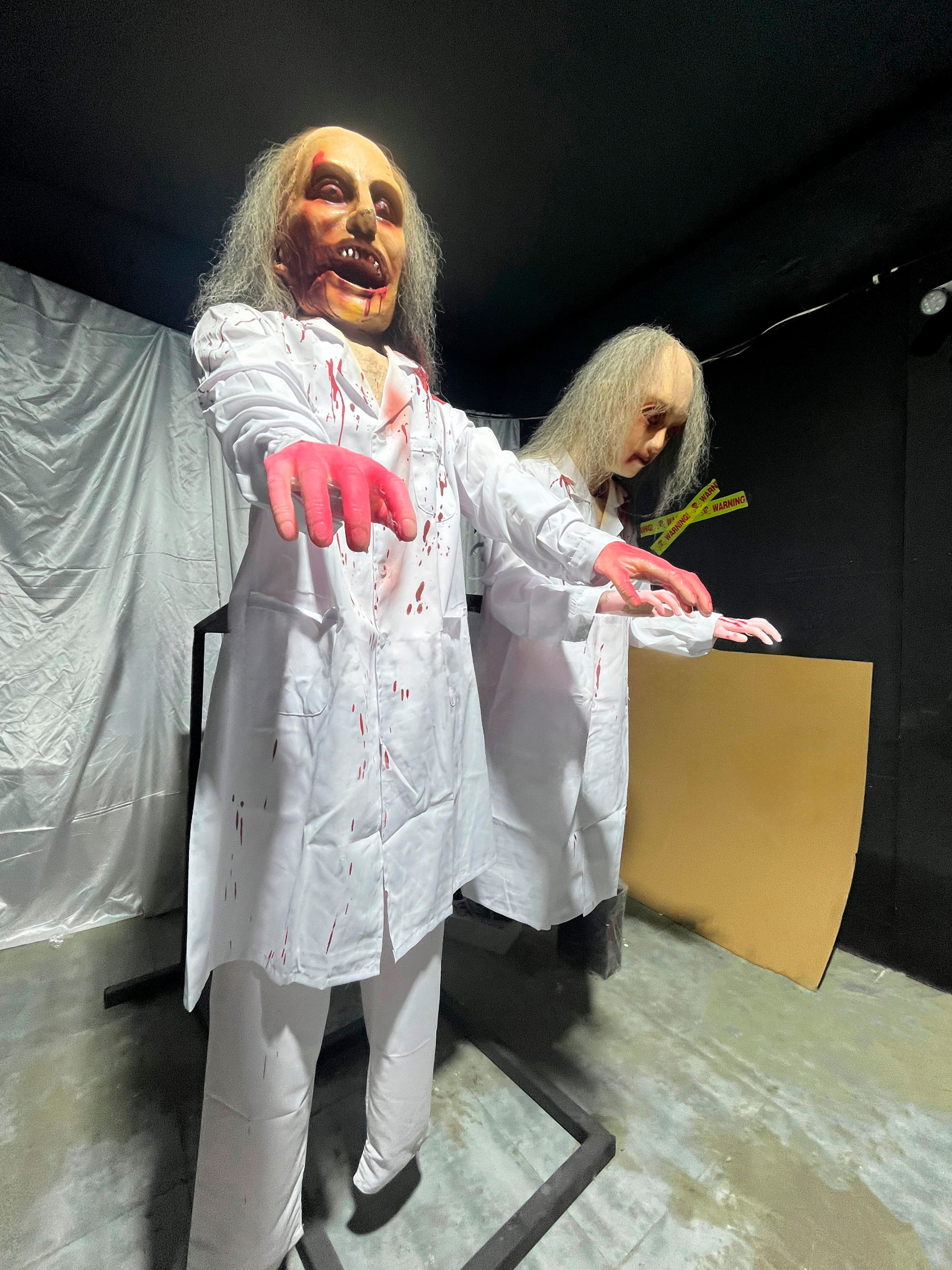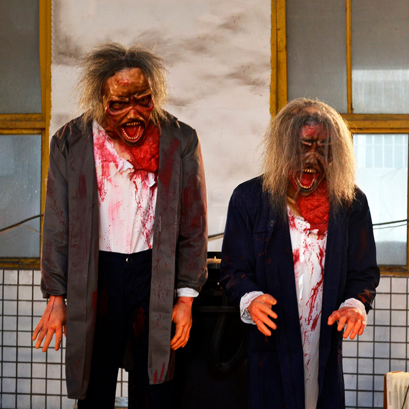 Хоррор-фигура идеально подходит для коридоров комнат страха или интерактивных сцен, где два персонажа усиливают психологическое давление на посетителей. Также отлично подойдёт для квест-комнат или зомби-тематических свадеб.