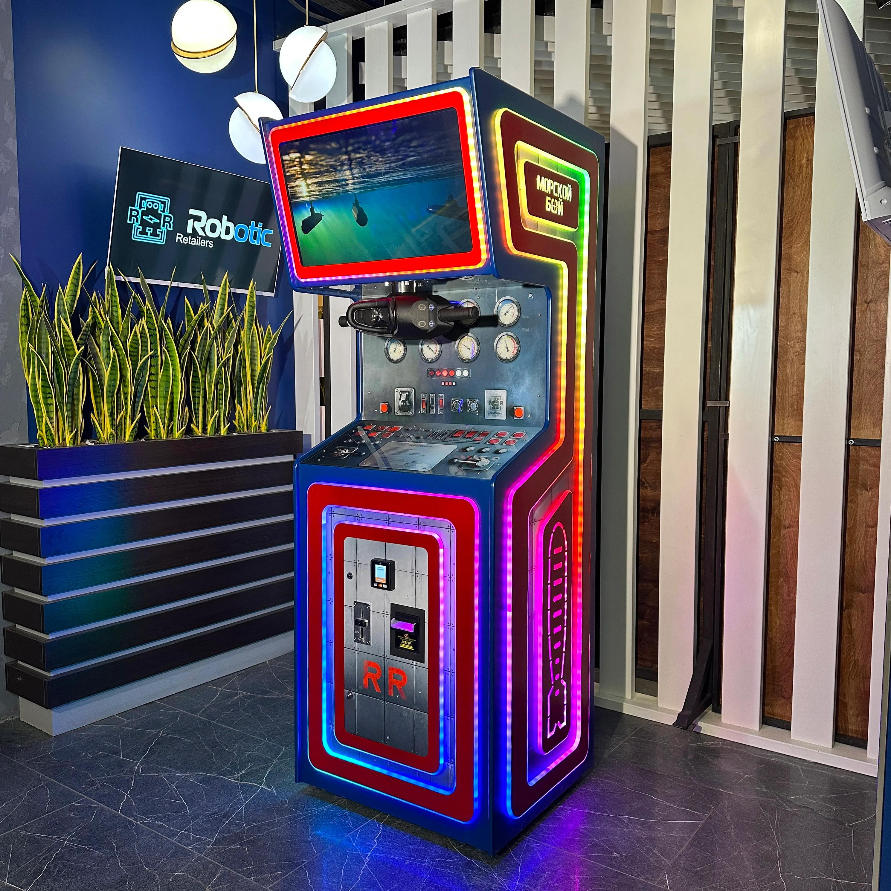 Управляйте подводной лодкой и ведите настоящую морскую битву! Автомат виртуальной реальности — это уникальный игровой автомат, который переносит игрока в центр подводного сражения. В отличие от обычных аркадных игр, здесь используется реалистичный управляемый перископ, благодаря которому игрок ощущает себя настоящим командиром подводной лодки.