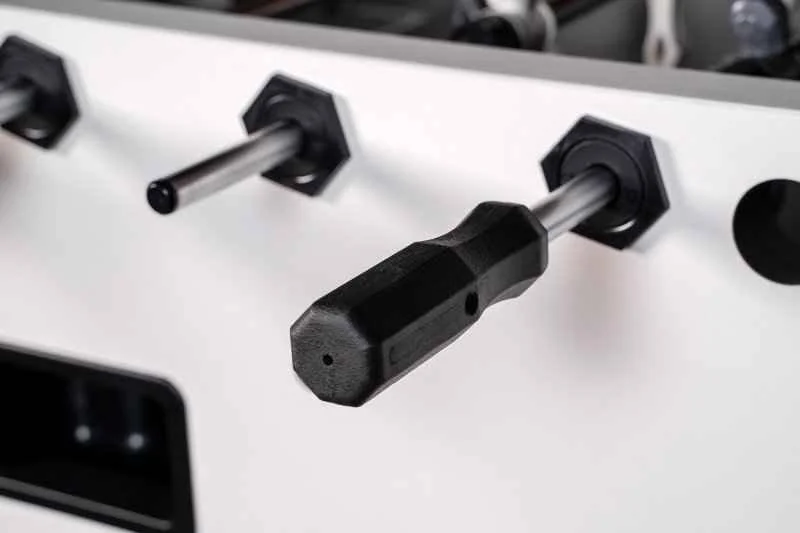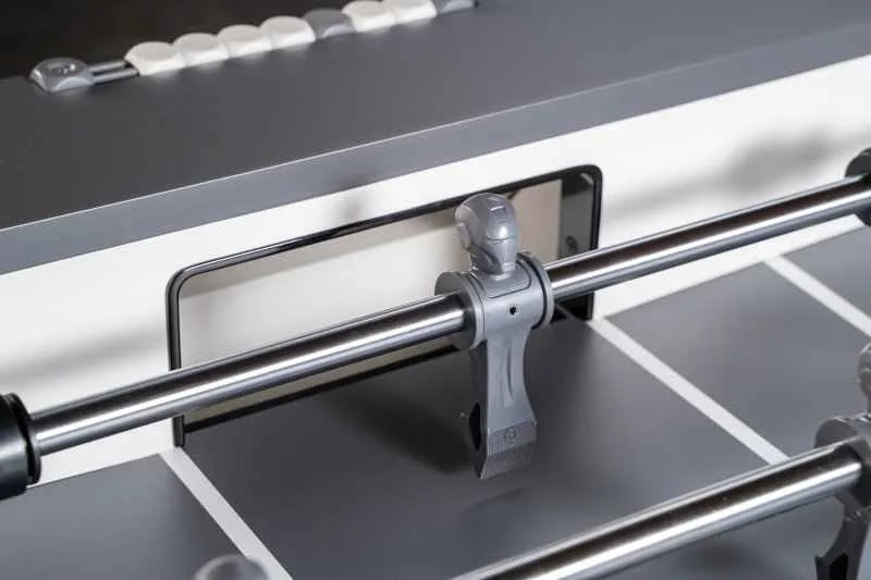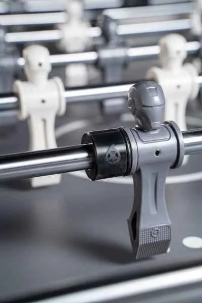 Стол оснащен двумя надежными опорными стойками, которые обеспечивают отличную устойчивость и предотвращают перекосы. Ножки устойчивы к царапинам, имеют прочную и стабильную конструкцию, что делает игровой процесс более комфортным и безопасным; - Штанги, на которых фиксируются футболисты: