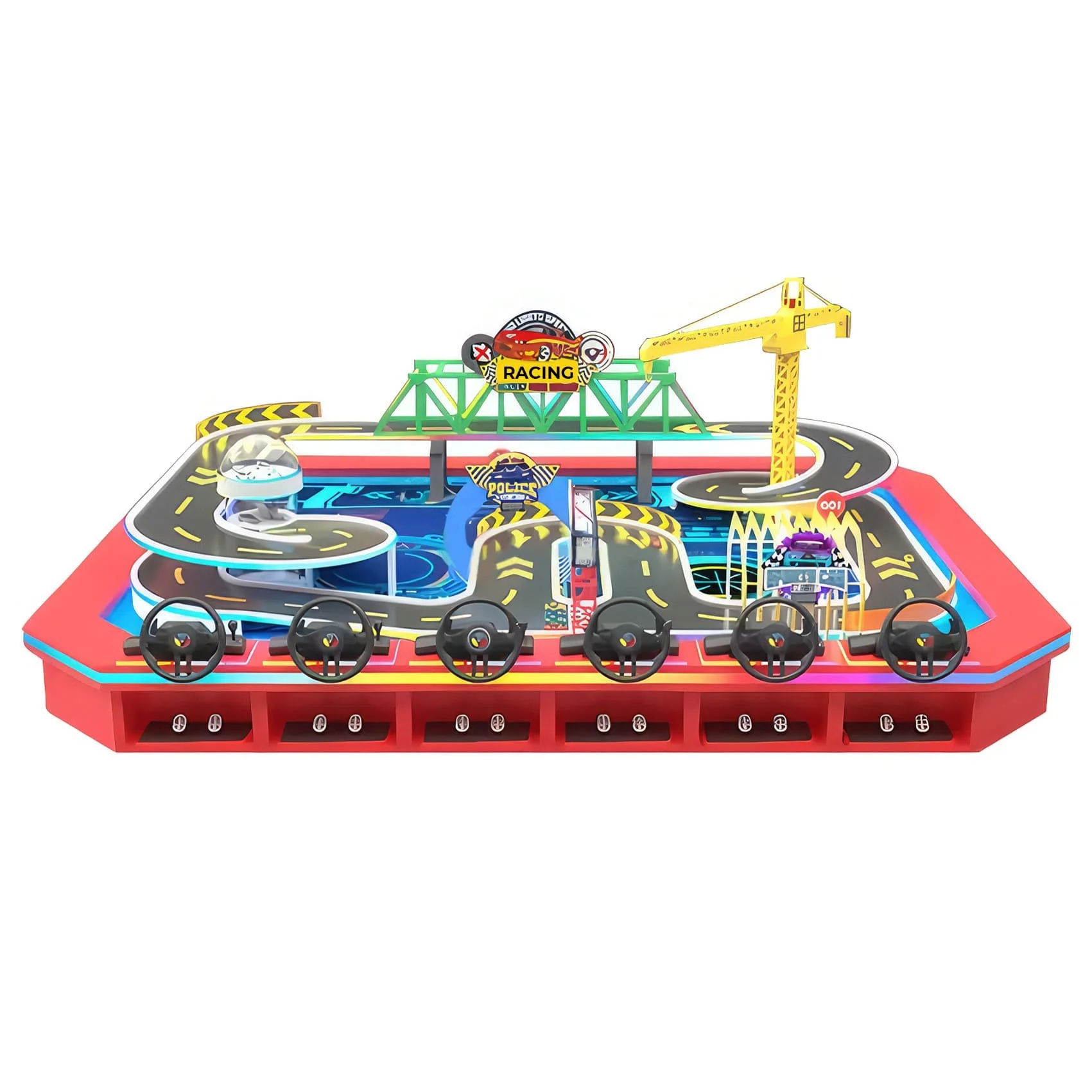 Игровой стол с гоночными машинками «Гонка чемпионов» — это инновационное развлечение для аркадных центров, детских площадок и семейных развлекательных комплексов. Стол создан в футуристическом стиле с яркими неоновыми элементами и многоуровневой трассой.