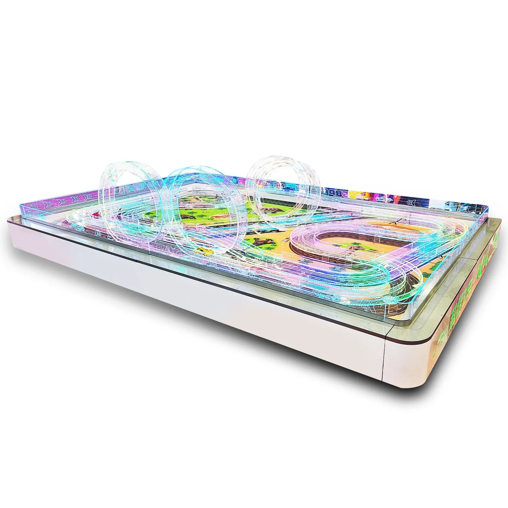 Игровой стол с трековыми гонками «Super racing» - это инновационный интерактивный аттракцион, который превращает гонки в захватывающее зрелище для всей семьи. Этот современный игровой автомат сочетает в себе динамичный дизайн, яркую подсветку и увлекательный геймплей, идеально подходящий как для детей, так и для взрослых.