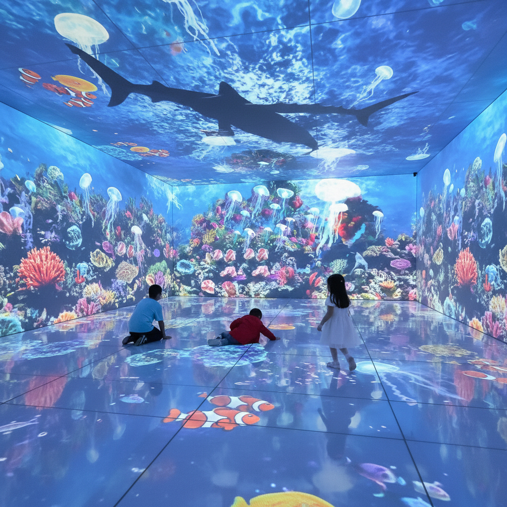 Иммерсивная LCD-комната идеально подходит для ТРЦ, парков развлечений, детских игровых центров, выставочных пространств, музеев, ресторанов и корпоративных зон отдыха.