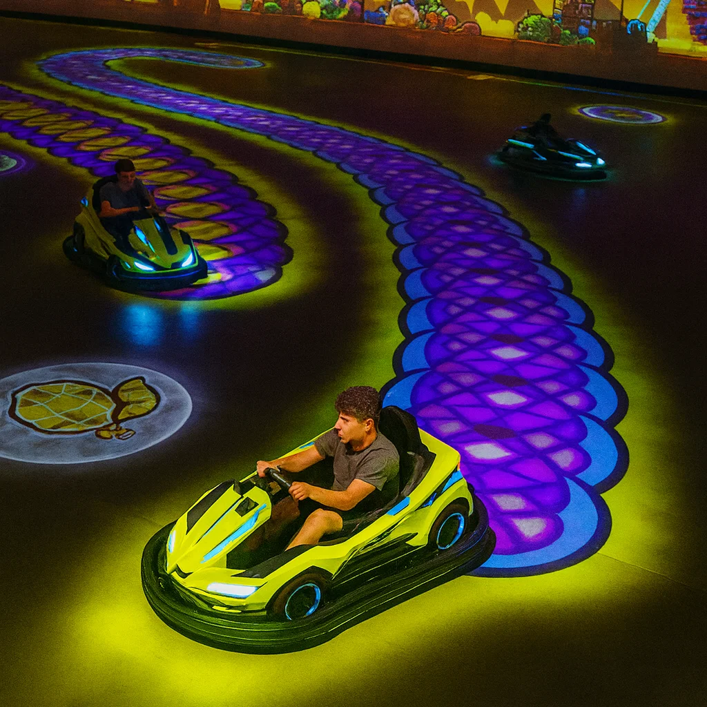 Игроки управляют настоящими бамперными машинками, которые взаимодействуют с динамическими элементами игры: виртуальными препятствиями, бонусами, зонами ускорения и интерактивными заданиями. Технология светового трекинга превращает любую площадку в полноценный цифровой аттракцион.