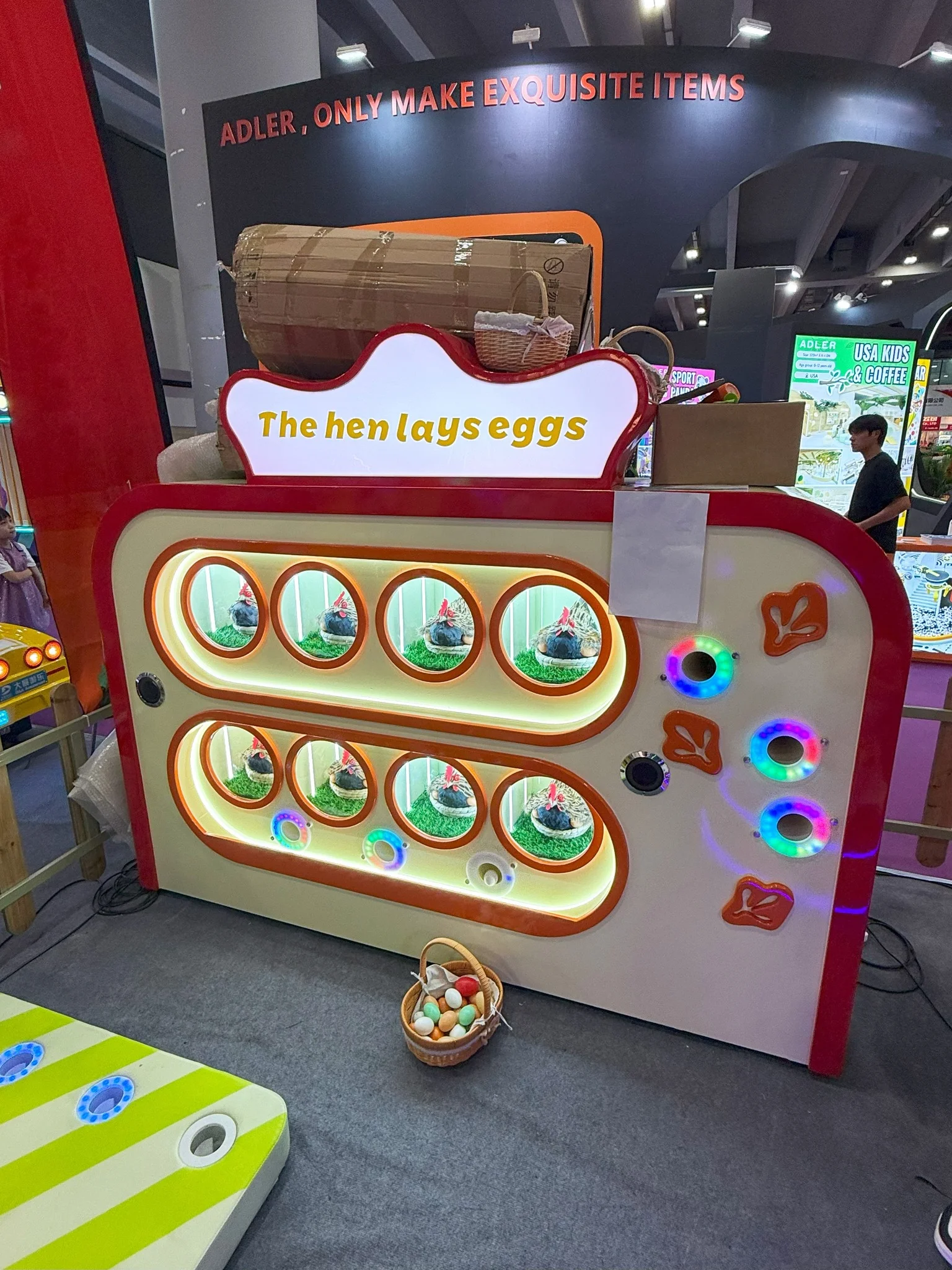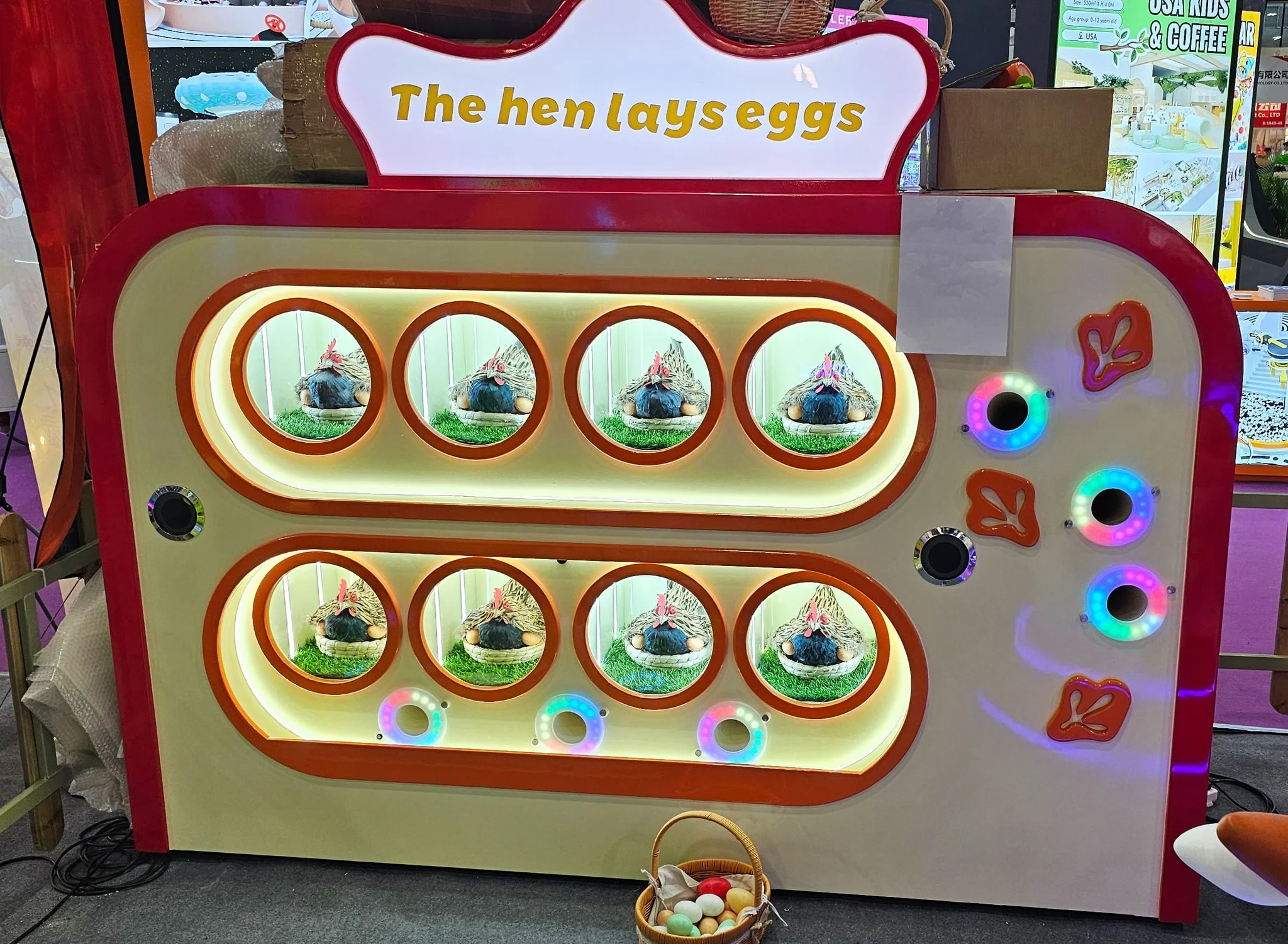 Это увлекательное и образовательное игровое оборудование, выполненное в виде милого фермерского домика с курами. Этот аттракцион идеально подходит для детских центров, торговых комплексов и тематических парков развлечений, где дети могут познакомиться с жизнью домашних животных и процессом получения яиц.