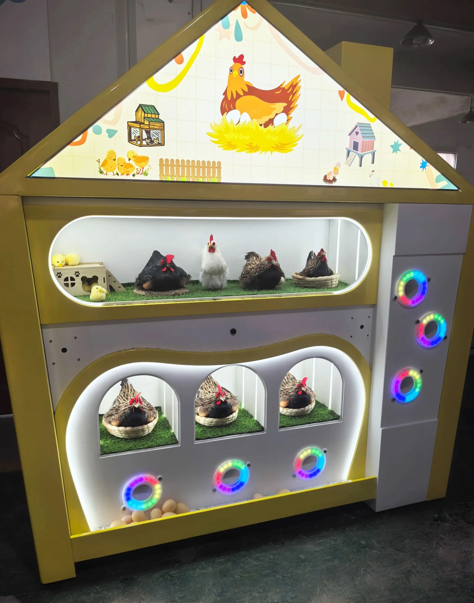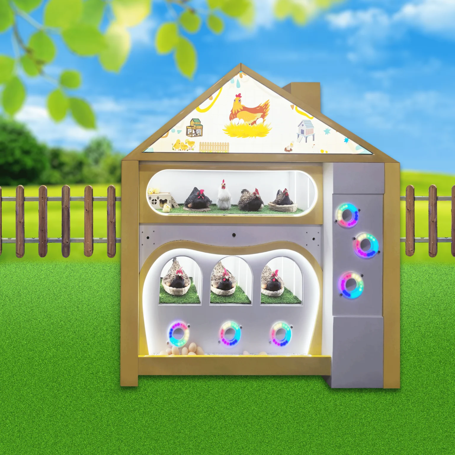 Это увлекательное и познавательное игровое оборудование, выполненное в виде забавного домика с курами. Этот аттракцион идеально подходит для детских центров, торговых комплексов и тематических парков развлечений, где дети могут познакомиться с жизнью домашних животных и процессом получения яиц.