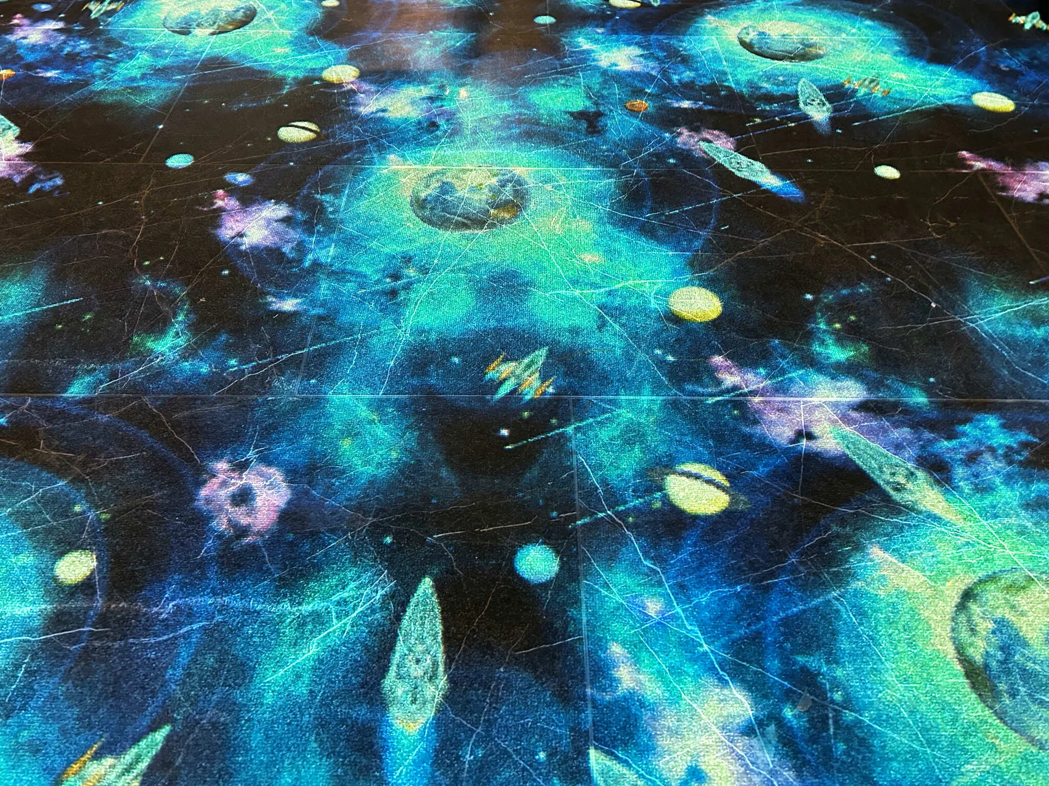 Это может быть белое мягкое покрытие (выбрать покрытие), или может светлый ковролин, на ваше усмотрение. Если такой возможности нет, то не стоит отказываться от покупки! Затемните зону игры по сильнее, и проекцию видно даже на черном и разноцветном полу.