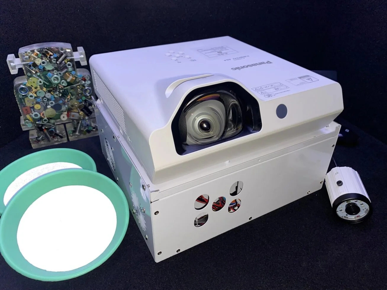 Это может быть белое мягкое покрытие (выбрать покрытие) ,или может светлый ковролин, на ваше усмотрение. Если такой возможности нет, то не стоит отказываться от покупки! Затемните зону игры по сильнее, и проекцию видно даже на черном и разноцветном полу.