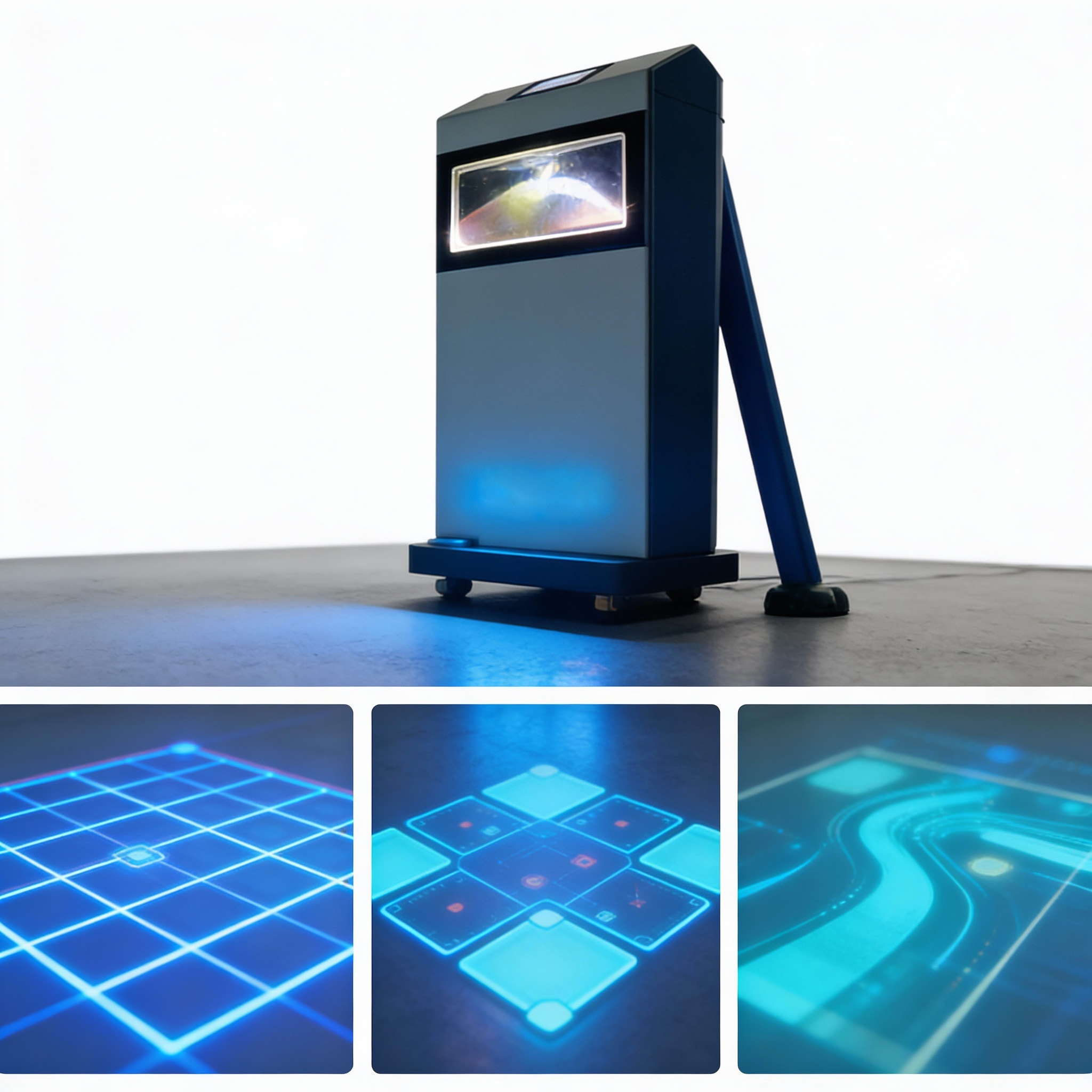 В основе станции — ультракороткофокусный лазерный проектор с разрешением 1280×800, обеспечивающий чёткое и яркое изображение даже при активном движении игроков. Интерактивный радар с радиусом до 10 метров и частотой 30 Гц точно считывает движения, делая игровой процесс плавным и отзывчивым.
