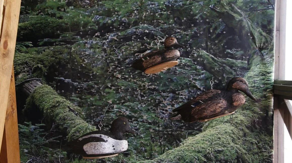 - Задняя стенка сделана полностью из стрелоулавливающего материала, который декорирован банером. В тире можно стрелять по моделям уток;