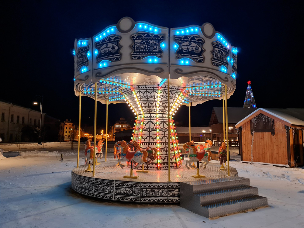 Можно почувствовать себя героем фильма, или сказки, настолько романтичной является эта карусель. Карусель можно с легкостью установить как в торговых и развлекательных центрах, так и в парках. Она станет излюбленным местом отдыха всей семьи!