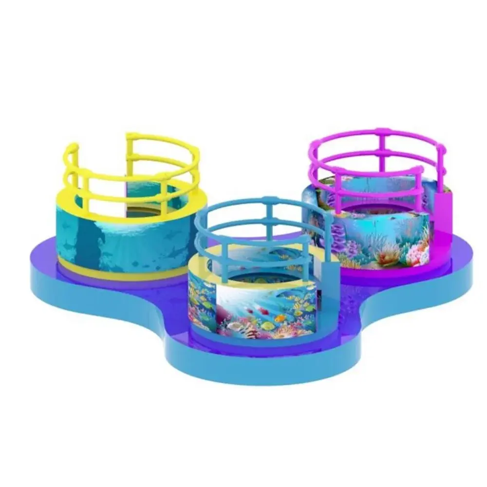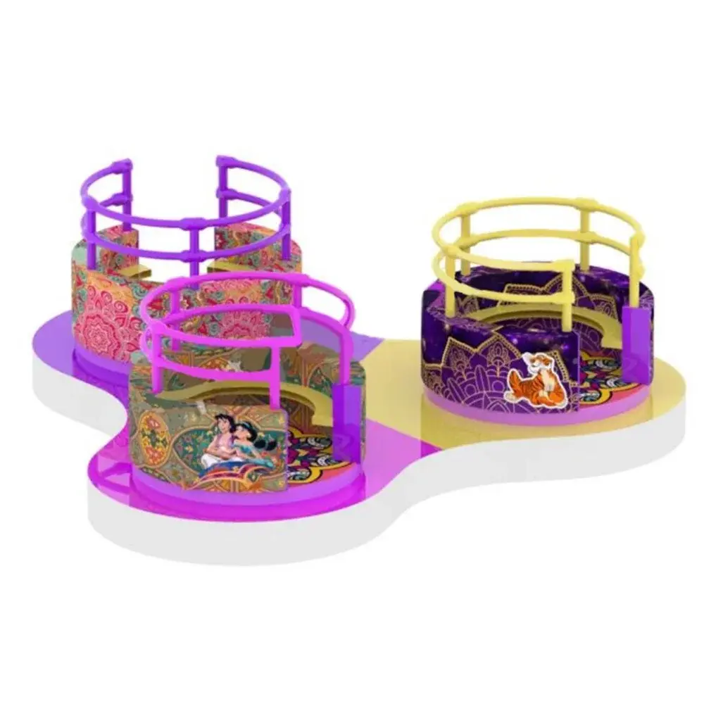 Особенно, стоит отметить и дизайн. Яркая, веселая, необычная, с мягкими комфортными посадочными местами, она очень понравится малышам и доставит им немало радостных минут, делая досуг интересным, а время, проведенное в игровой комнате, развлекательном центре, парке или другом заведении, оснащенном каруселью, - незабываемым. Удобные бортики не дадут детям упасть даже при самом активном движении. Мягкая карусель оптимально подойдет для обустройства помещения и не займет слишком много места. Изделие не требует подключения к сети, поскольку приводится в движение механически.