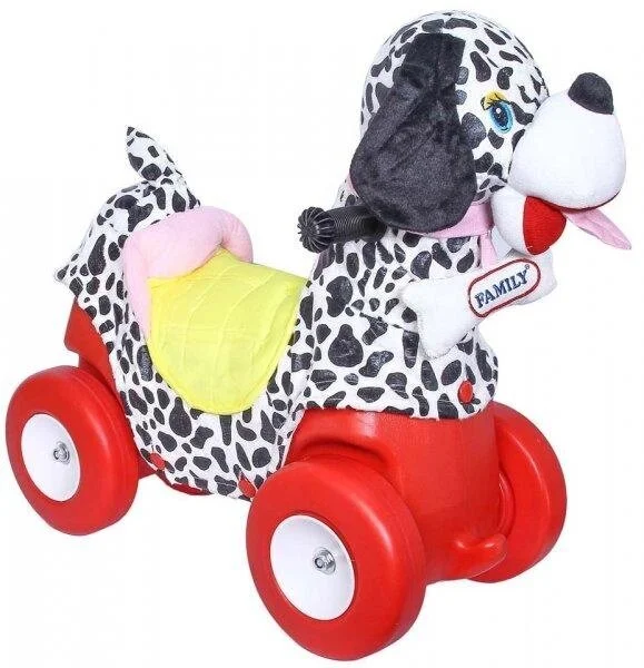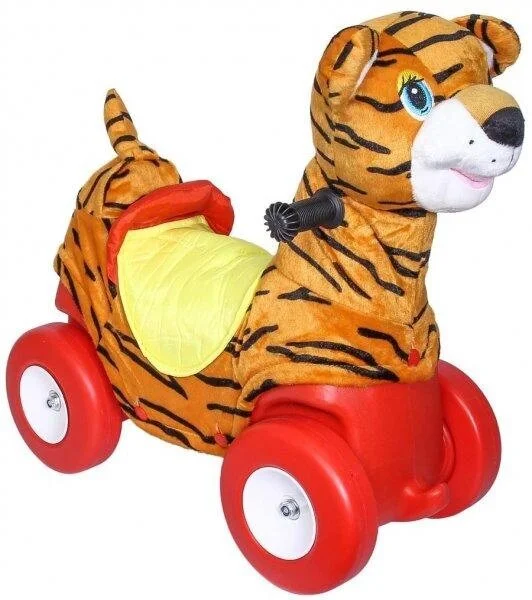 Имеет удобную высокую спинку, удобные ручки, четыре устойчивых колеса, движется при помощи ног ребенка, идущих по полу, что позволяет детям контролировать скорость движения.