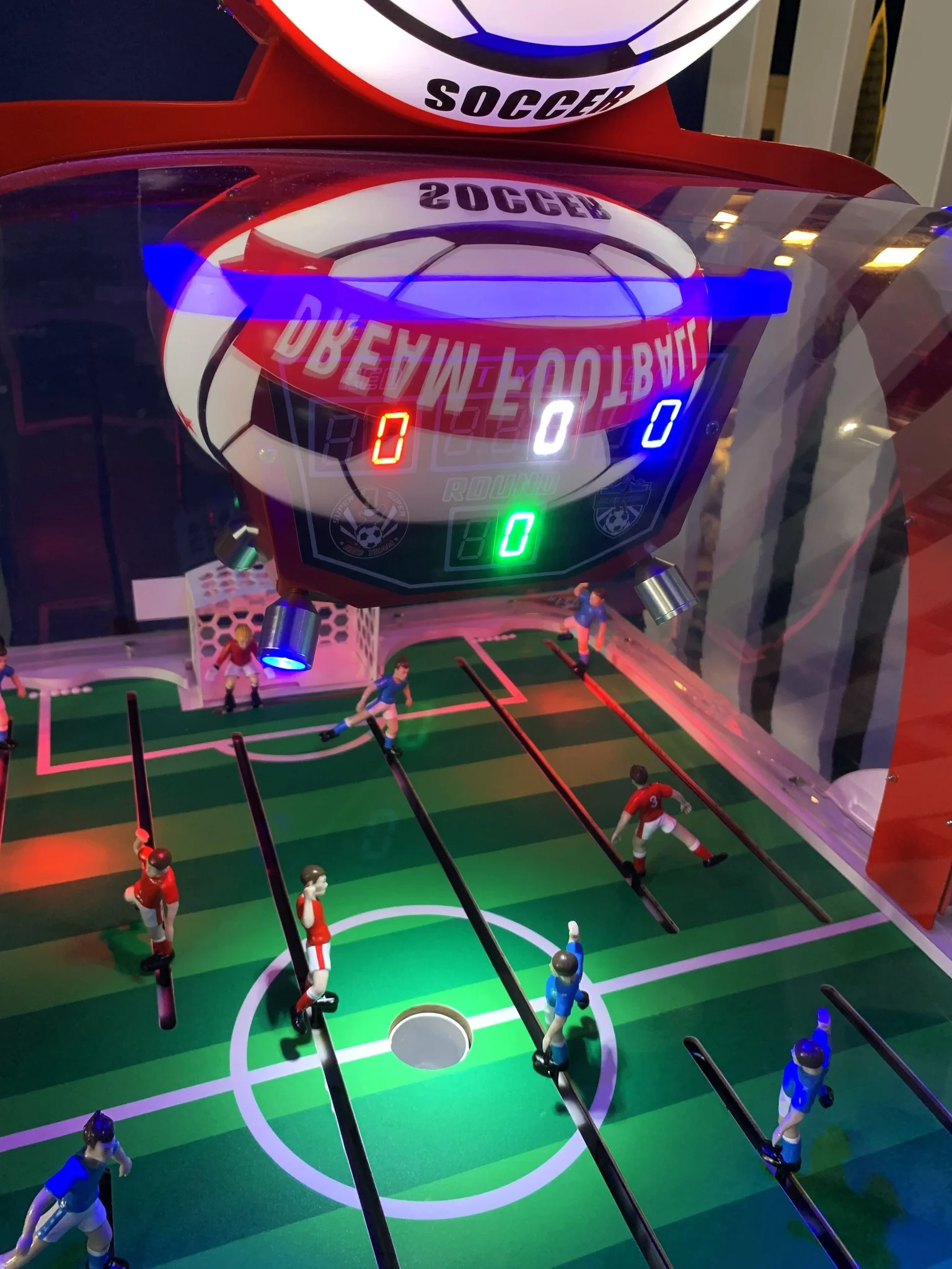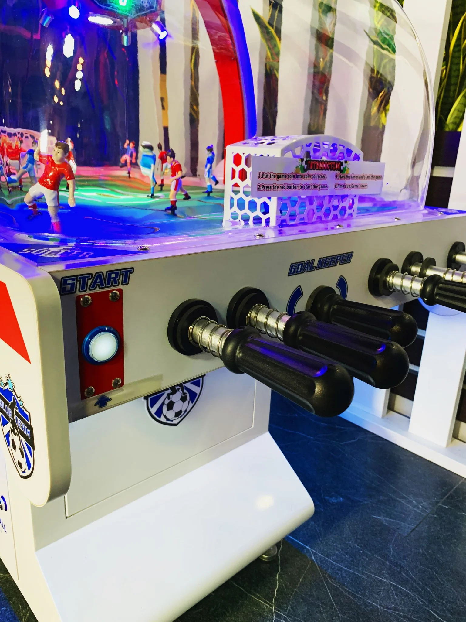 Аппарат оснащён цифровым табло с автоматическим подсчётом голов, монетоприёмником и системой автоматической подачи мяча, что исключает возможность попадания мяча в руки игрока. Красочные световые эффекты и звуковое сопровождение создают атмосферу настоящего футбольного матча.