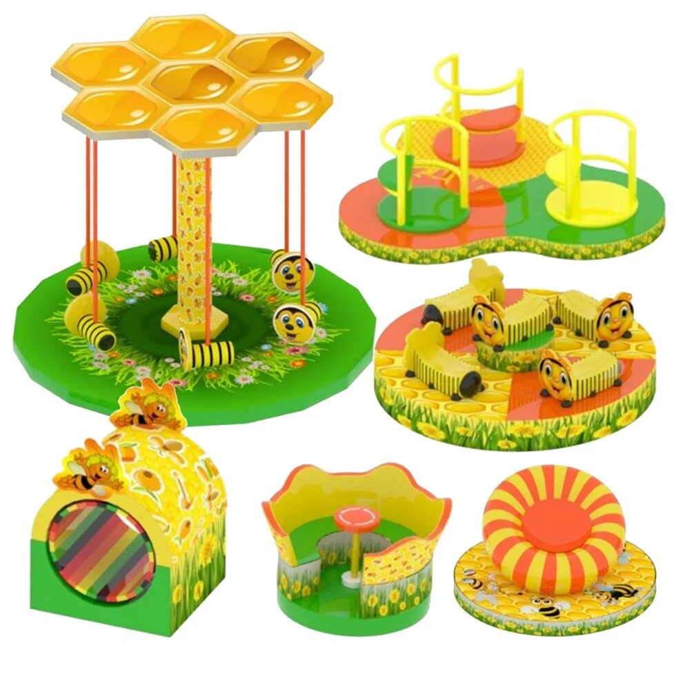Карусели созданы специально для маленьких детей. Лианы, сиденья-груши а так же платформы каруселей обтянуты мягкими и безопасными материалами, чтобы полностью исключить возможность травм на каруселях. Также карусели имеют яркий дизайн, который привлечет внимание.