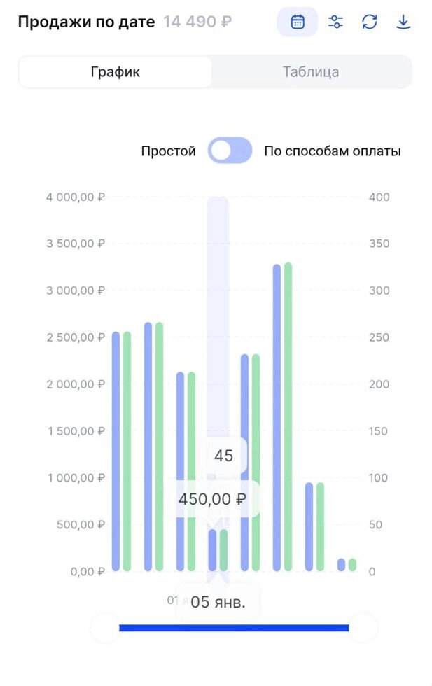 - Детализация и контроль выручки по каждой из установленных платежных систем;