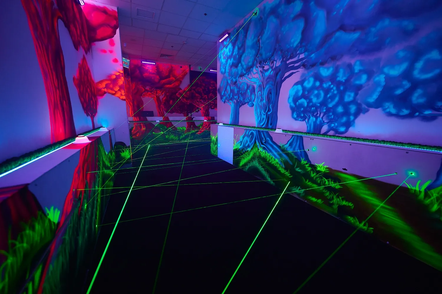 - Лазерный лабиринт: 90 лазеров на 38 м2;