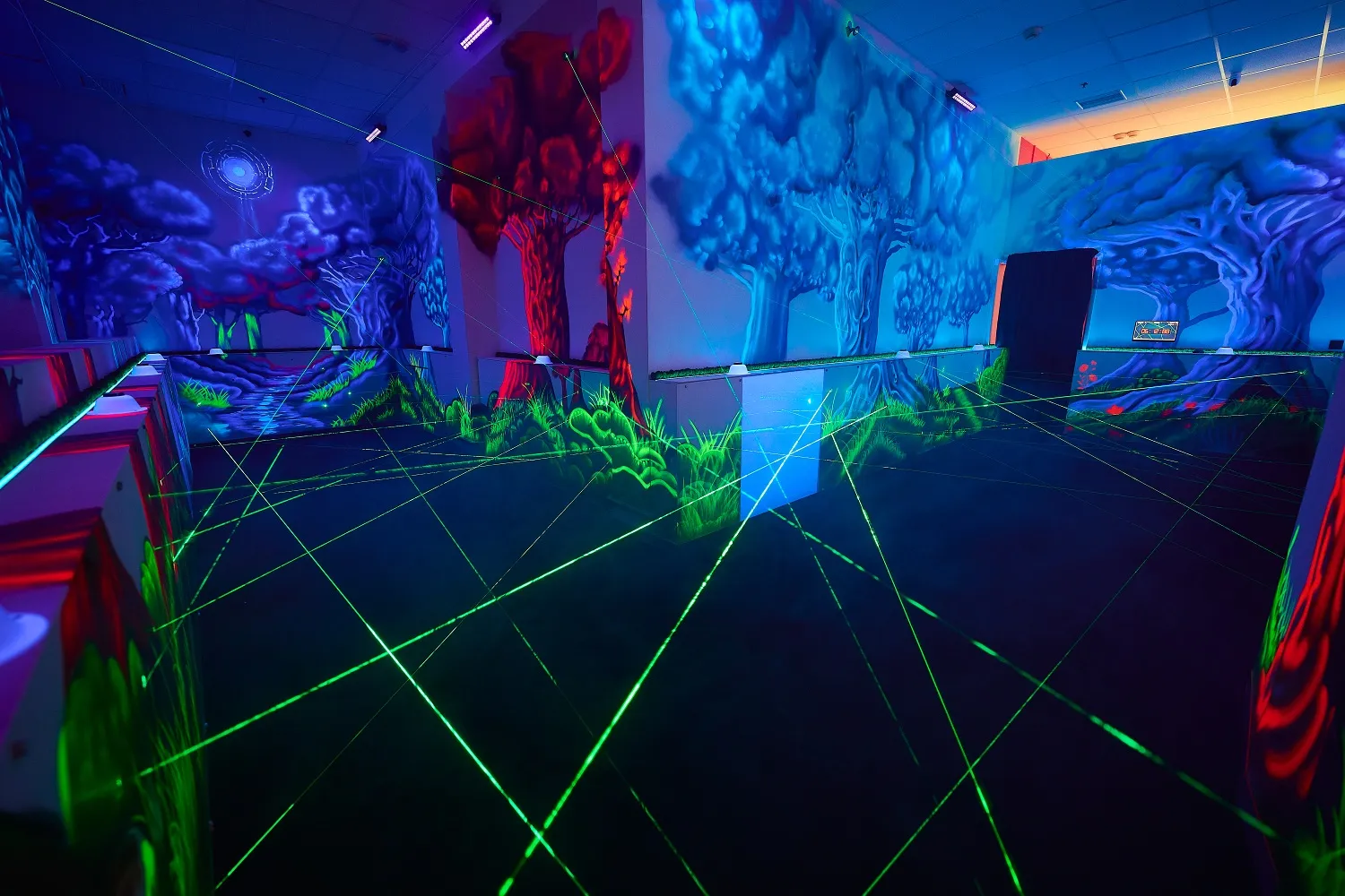 - Лазерный лабиринт: 60 лазеров на 7,5 м2;