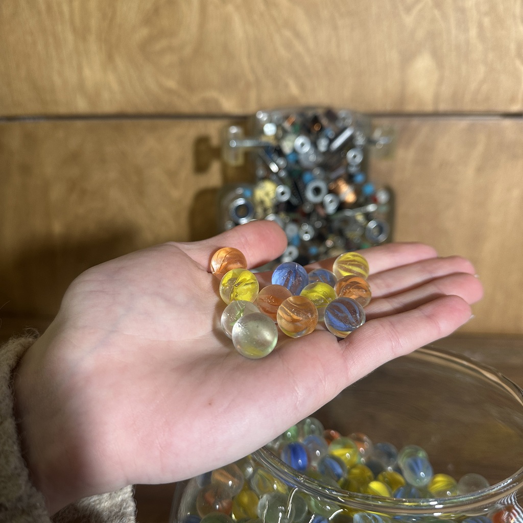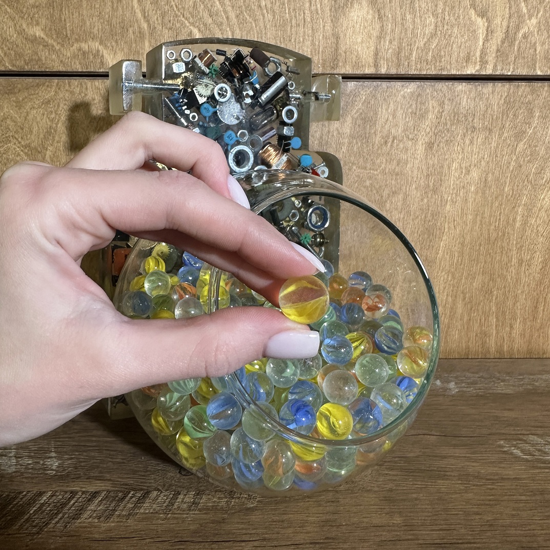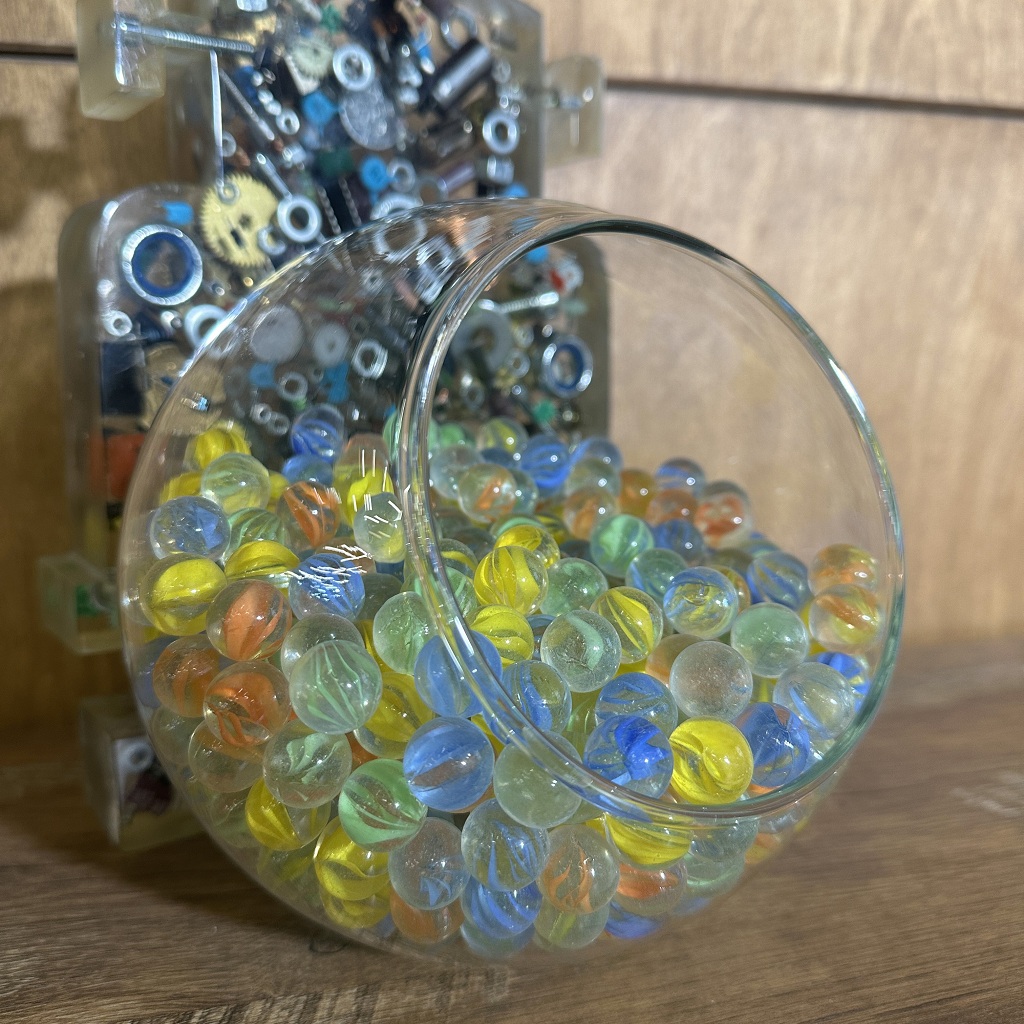 Во время игры некоторые автоматы выдают стеклянные шарики в качестве награды. Ребёнок копит марблс, а затем: