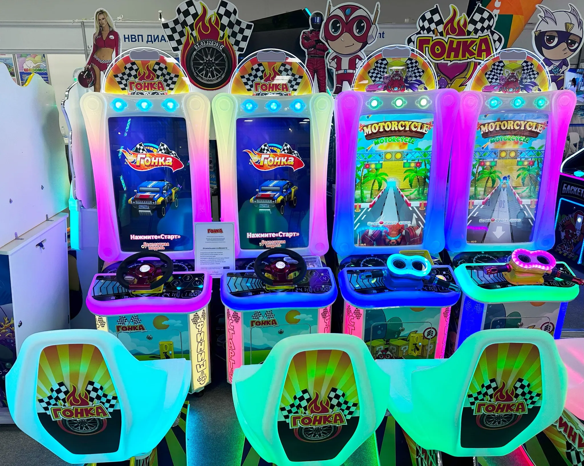 Может работать как единично установленный автомат с купюроприемником, так и в комплекте работающий от жетонов. Экран 32 дюйма, защищён закаленным стеклом. Автомат дополнен удобным и классным "гоночным" креслом. Не сложная и интересная игра для детей разного возраста!