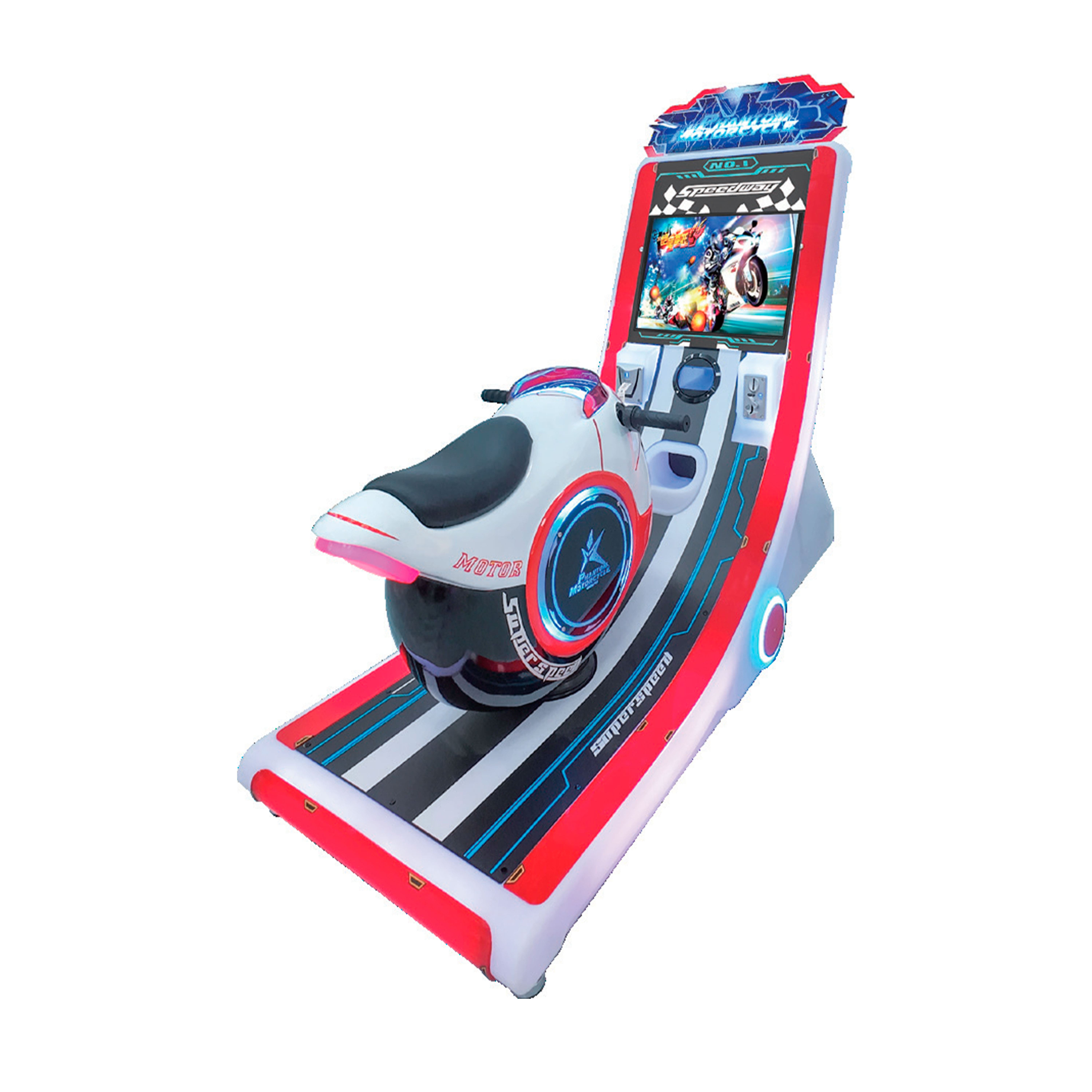 Посадка в стиле спортбайка, наклоны корпуса и отзывчивое управление создают эффект настоящего заезда, усиливая азарт и эмоциональное погружение. Игровой процесс строится на соревновательных гонках с различными трассами и заданиями, поддерживается режим сетевой игры и рейтинг участников. Компактные габариты позволяют эффективно интегрировать автомат даже в пространства с ограниченной площадью, не теряя визуальной выразительности и сценического присутствия.