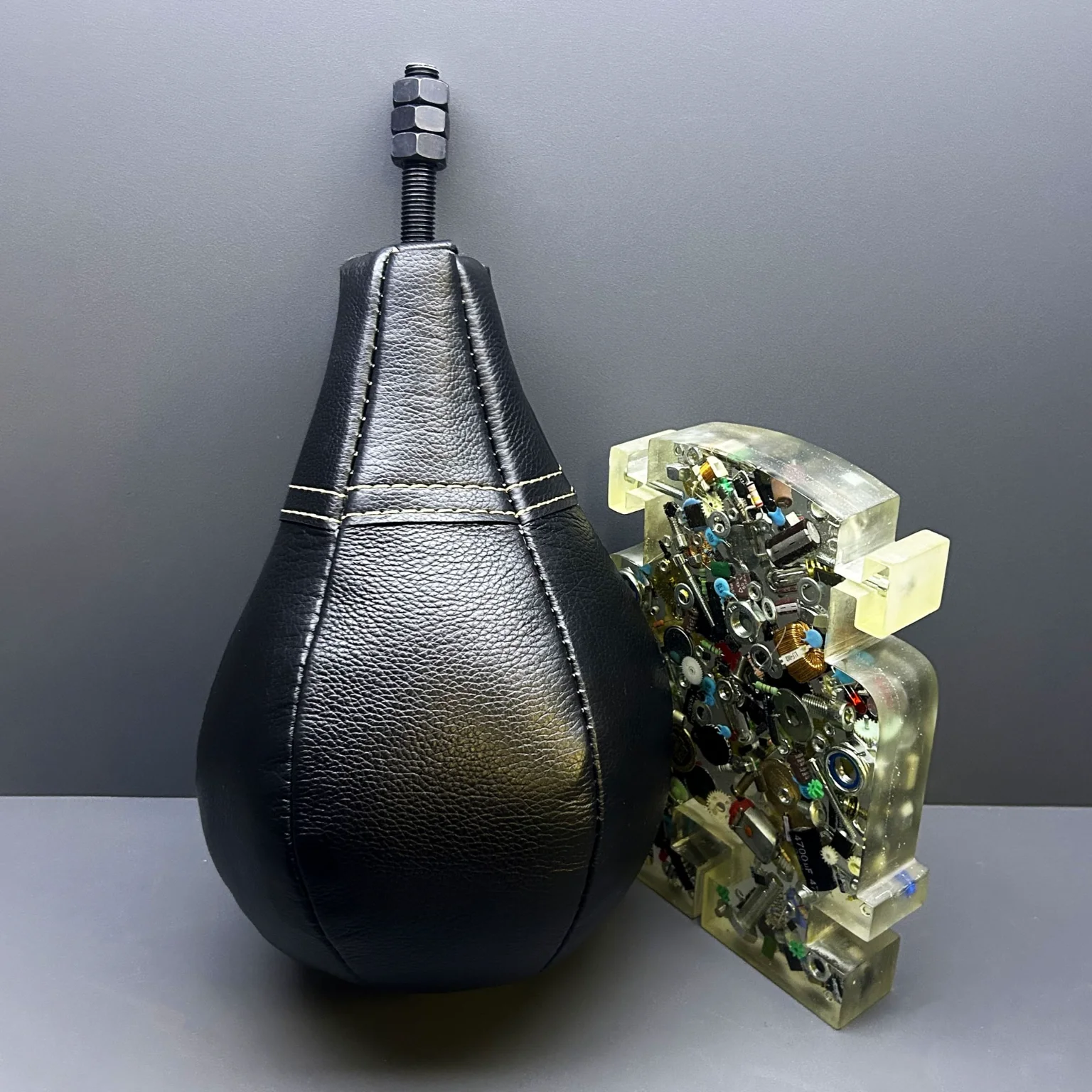 Новая груша для силомера «Boxer» - это мягкий кожаный чехол для безопасного удара, полиуретановый конус с оксидированной шпилькой класса прочности 12.9 для максимальной надёжности и влагостойкий наполнитель, который сохраняет форму груши, не допуская деформаций.
